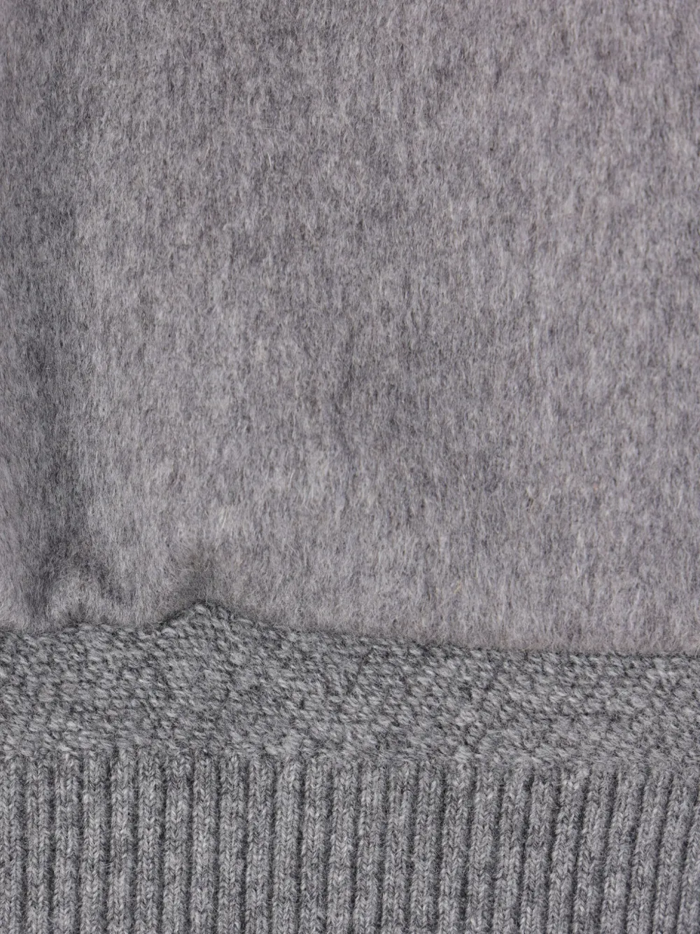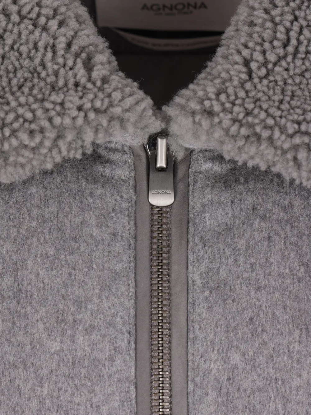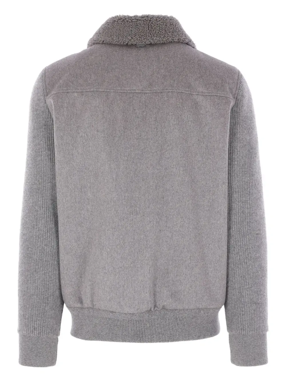 серые рукава в рубчик, застёжка-молния, воротник-отделка из овчины, передние карманы, ребристый низ
