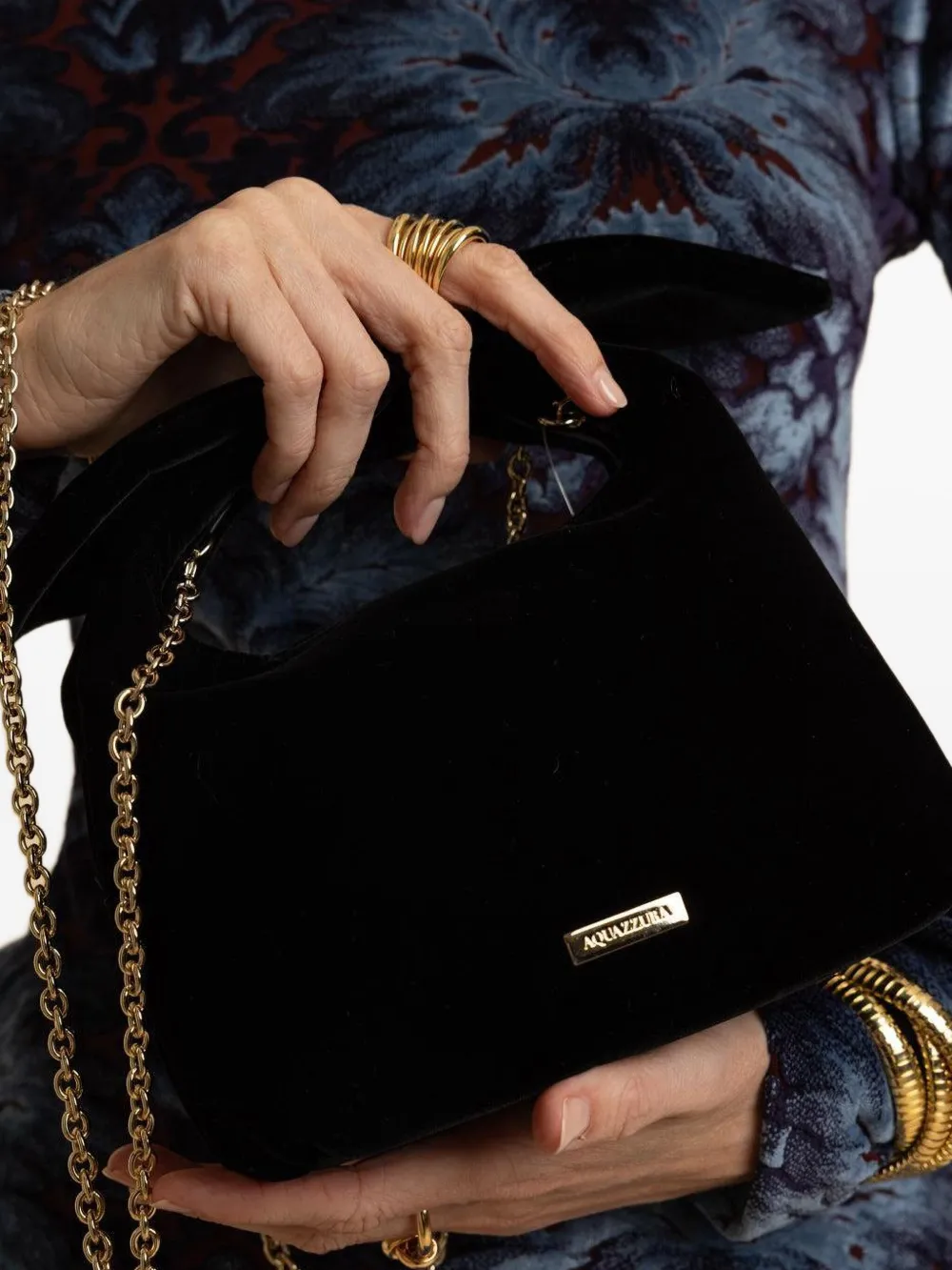 Сумка-тоут из бархата с бантом Aquazzura, черный