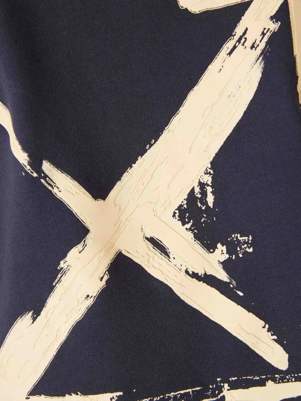 темно-сапфировый круглый вырез короткий рукав графичный логотип спереди минималистичный дизайн хлопок
