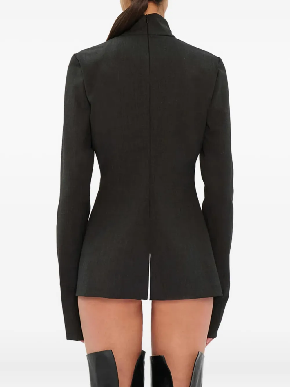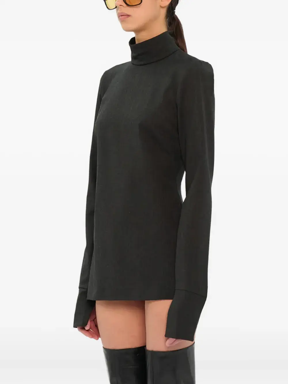 черный высокий воротник, длинные рукава, разрез сзади, потайная застёжка-молния сзади