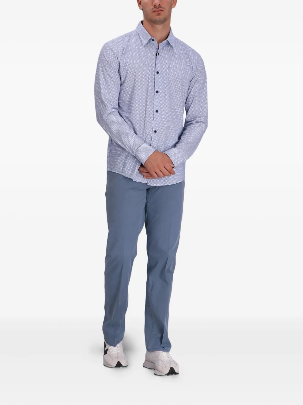 Рубашка с длинными рукавами и геометричным принтом Boss, синий