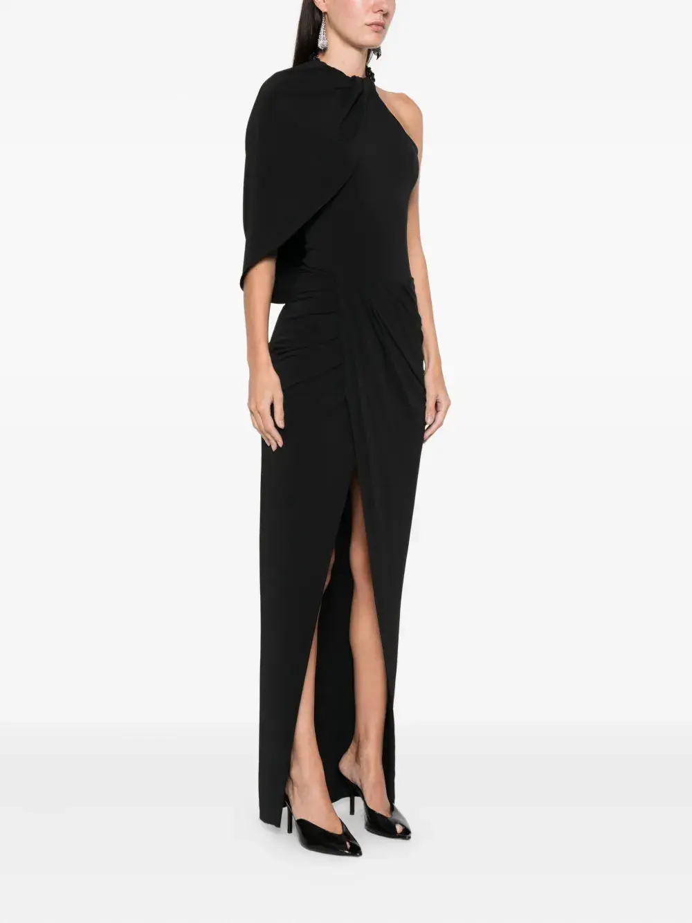 черная отделка бисером, асимметричный крой на одно плечо, драпировка, скрытая застежка-молния