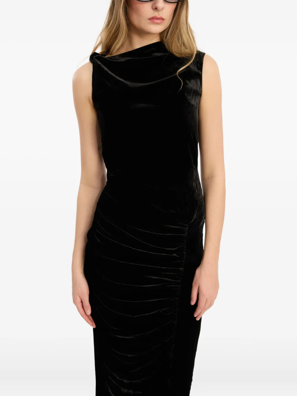 Бархатное платье миди с драпировкой Rotate Birger Christensen, черный