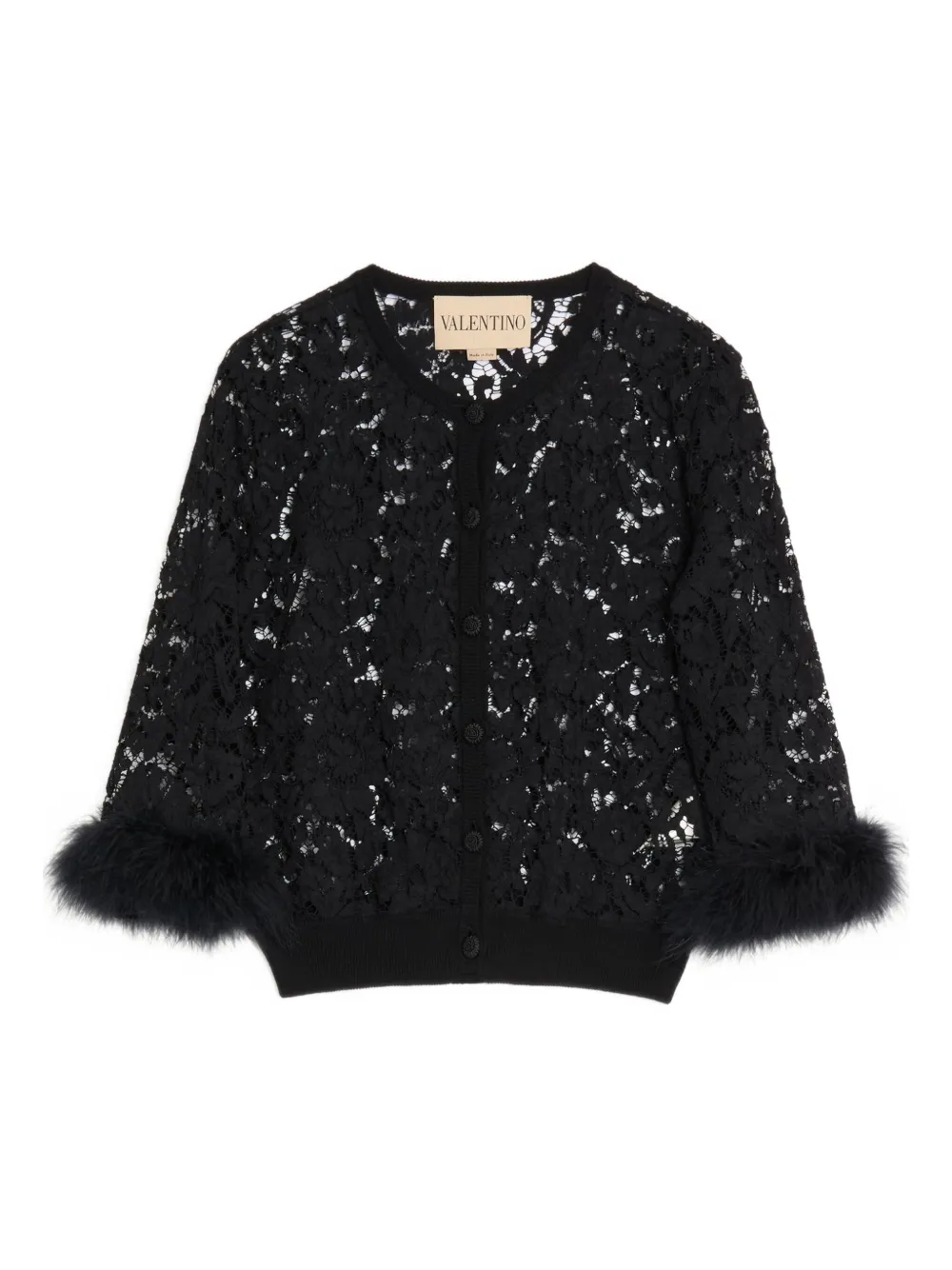 Кардиган с перьями Valentino Garavani, черный 281 565₽
