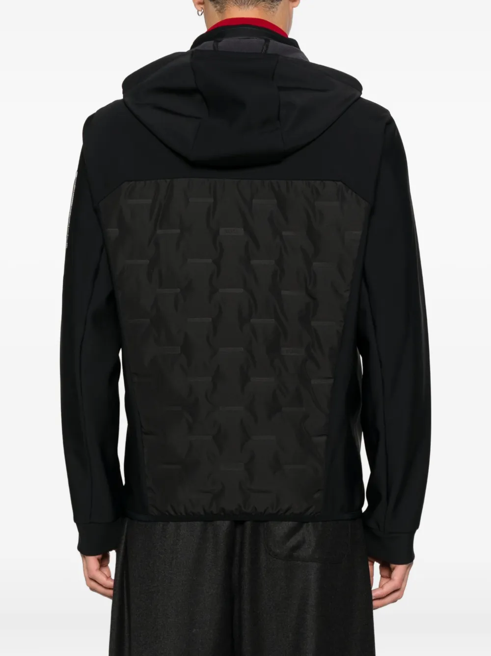черный цвет, длинные рукава, застежка-молния спереди, съемный капюшон, прорезные карманы спереди, прорезиненный логотип