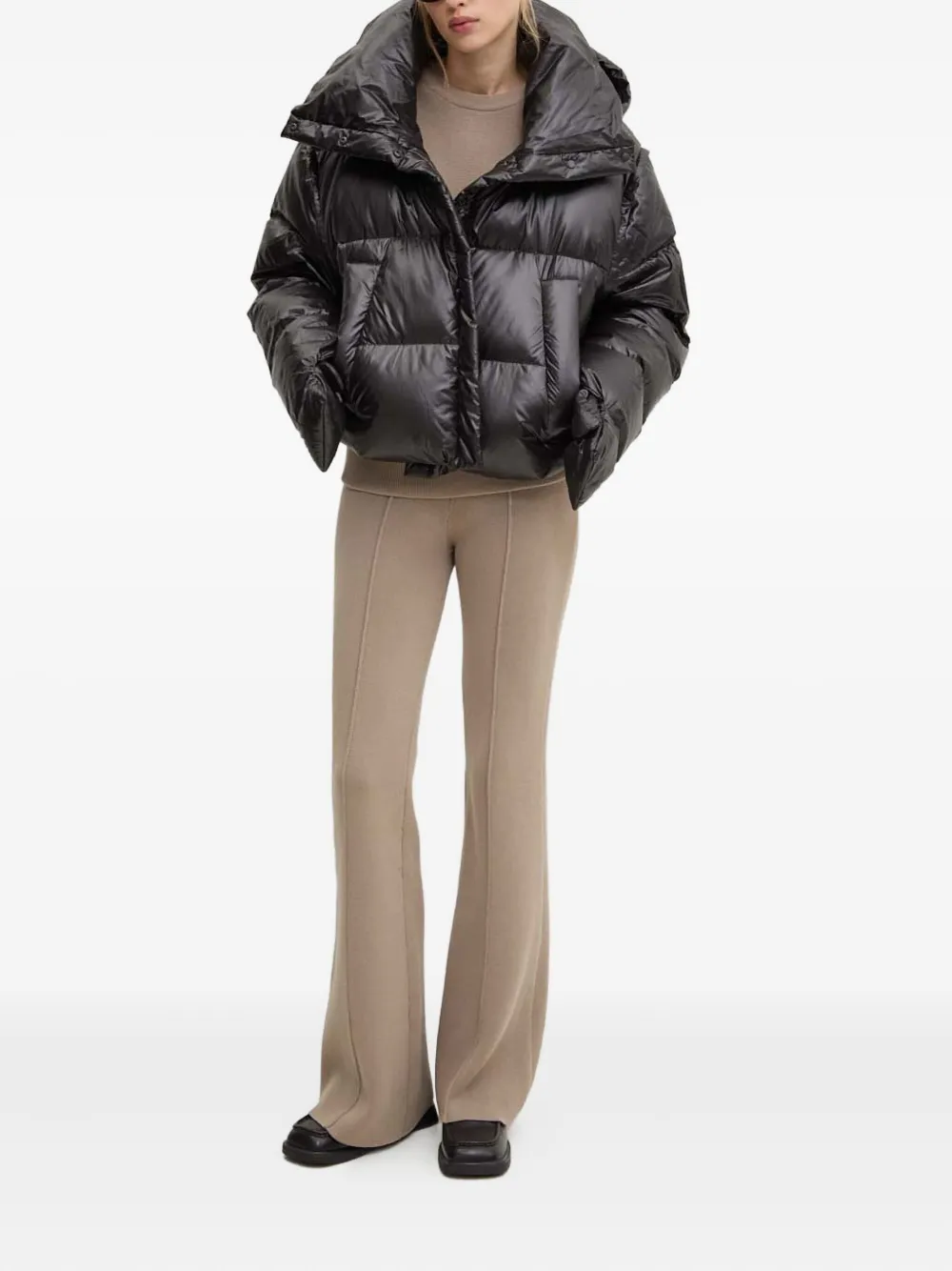черная стёганая модель с высоким воротником, застежкой на кнопки и длинными рукавами