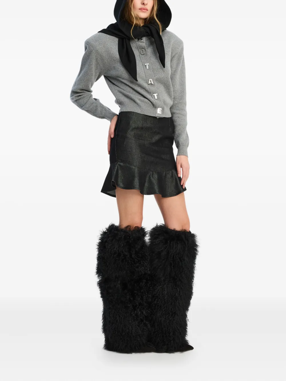 черная мини-юбка из органического хлопка с эффектом денима и оборчатым подолом