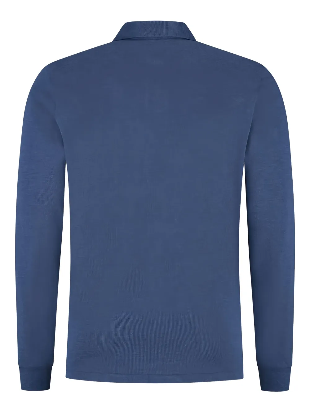 синий хлопок воротник поло длинные рукава застежка на пуговицах спереди фирменный логотип Polo Pony