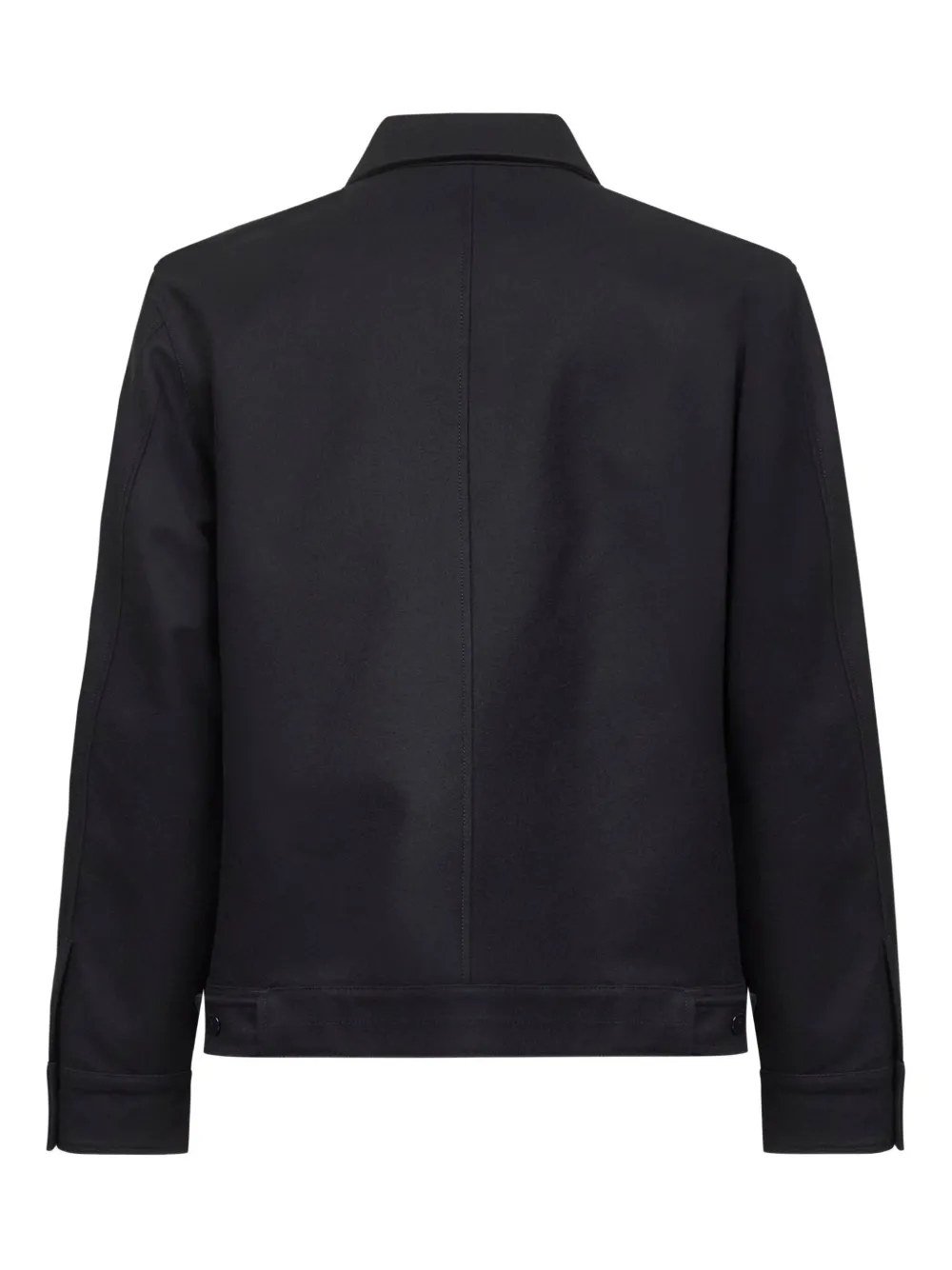 синяя куртка с застежкой-молнией на два бегунка, воротником-рубашкой, манжетами на кнопках, прорезными карманами и регулируемым подолом