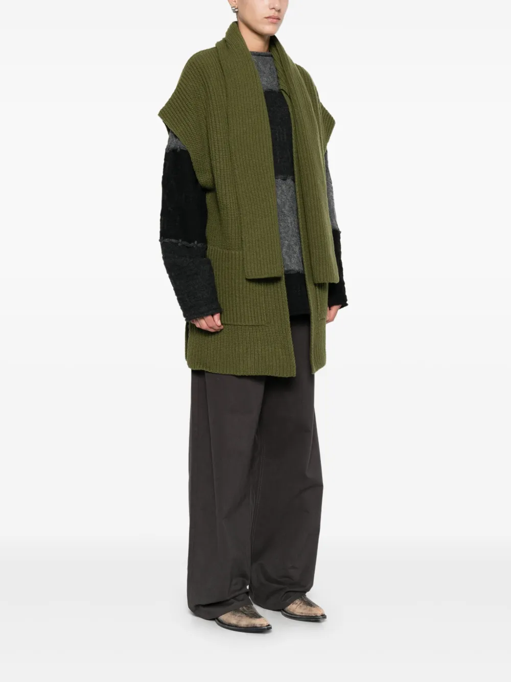 Кардиган-пальто в рубчик Arovescio, зеленый
