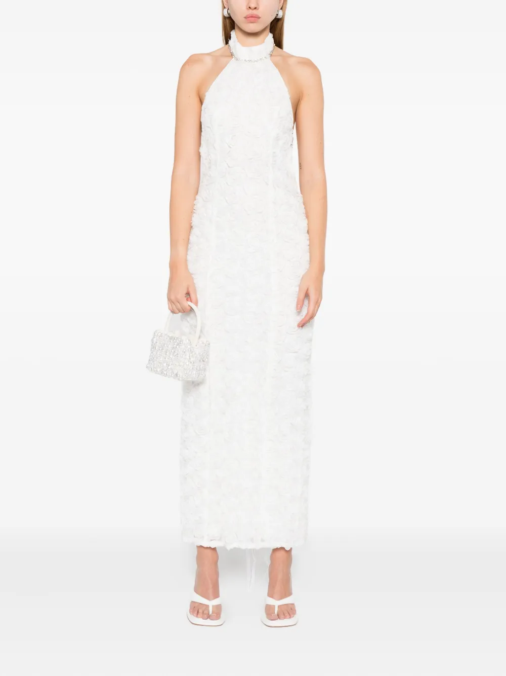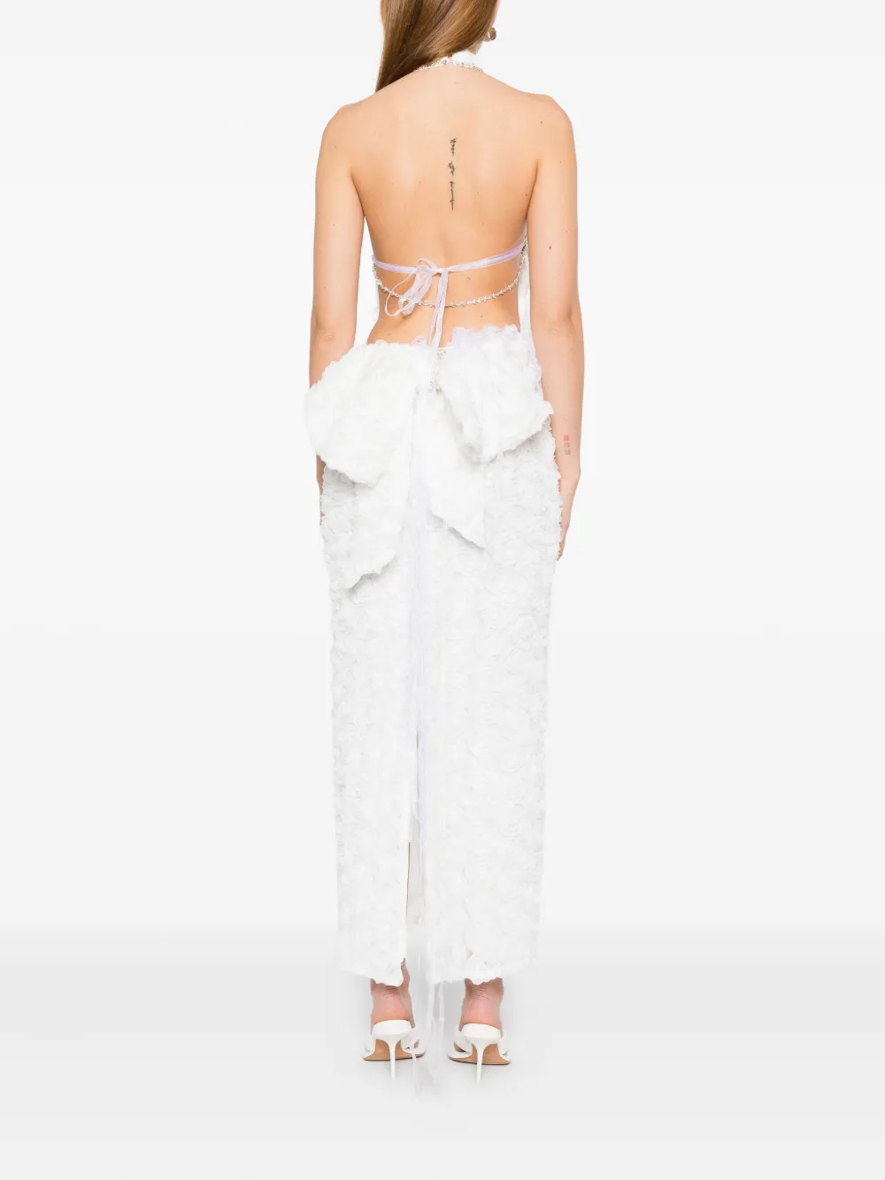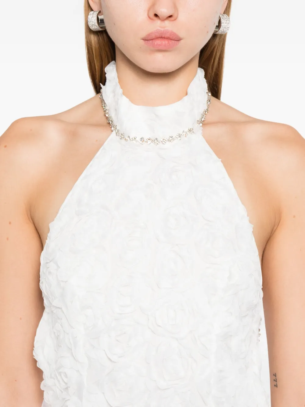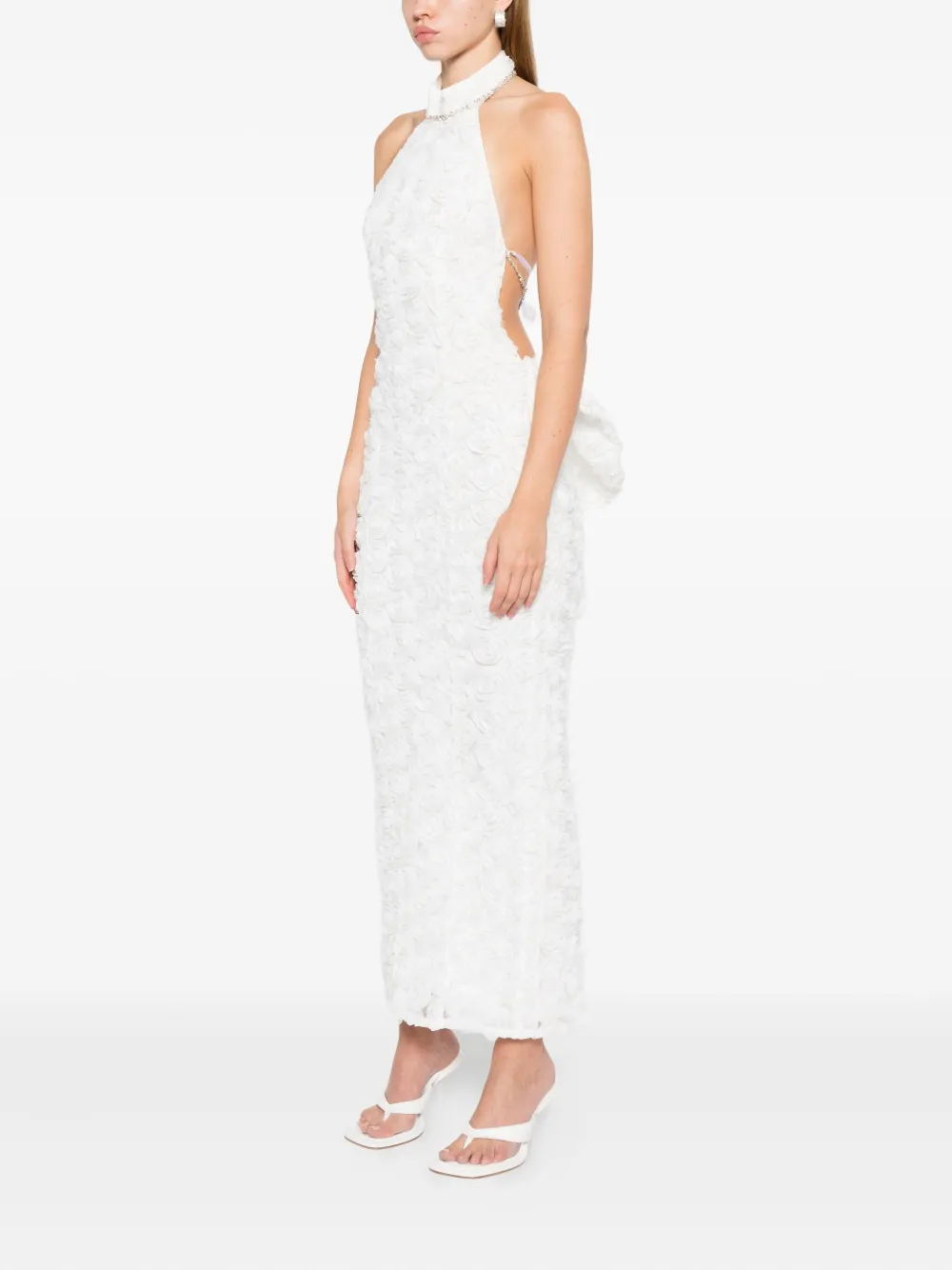 Платье с розетками, украшенное кристаллами Rahil Hesan, белый