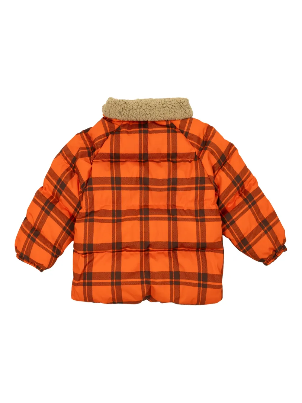 Клетчатый пуховик с воротником из шерпы Tiny Cottons, оранжевый