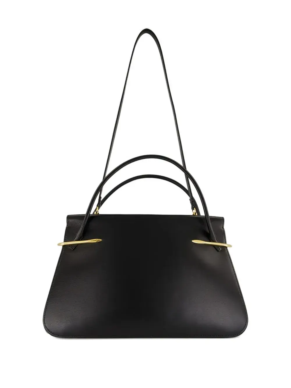 черные кожаные верхние ручки, фурнитура с золотистым покрытием, наплечный ремень, основное отделение