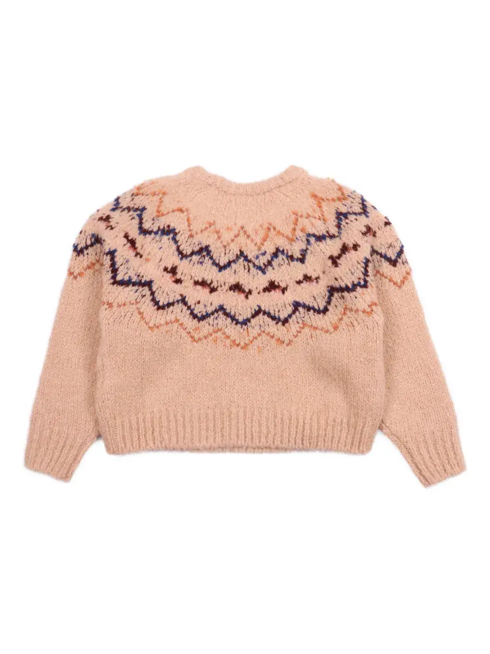 светло-розовый жаккардовый джемпер с узором, круглым вырезом и длинными рукавами