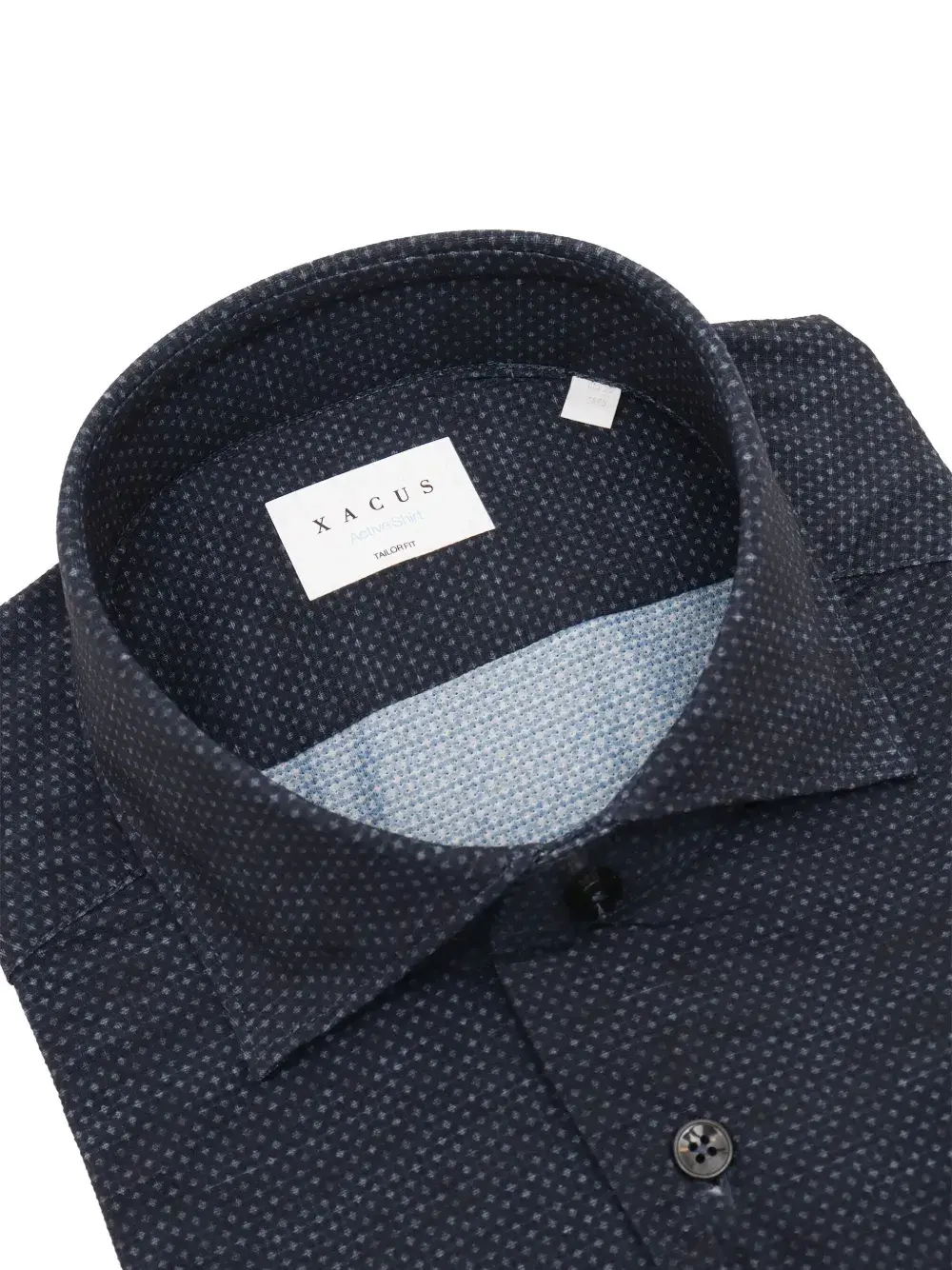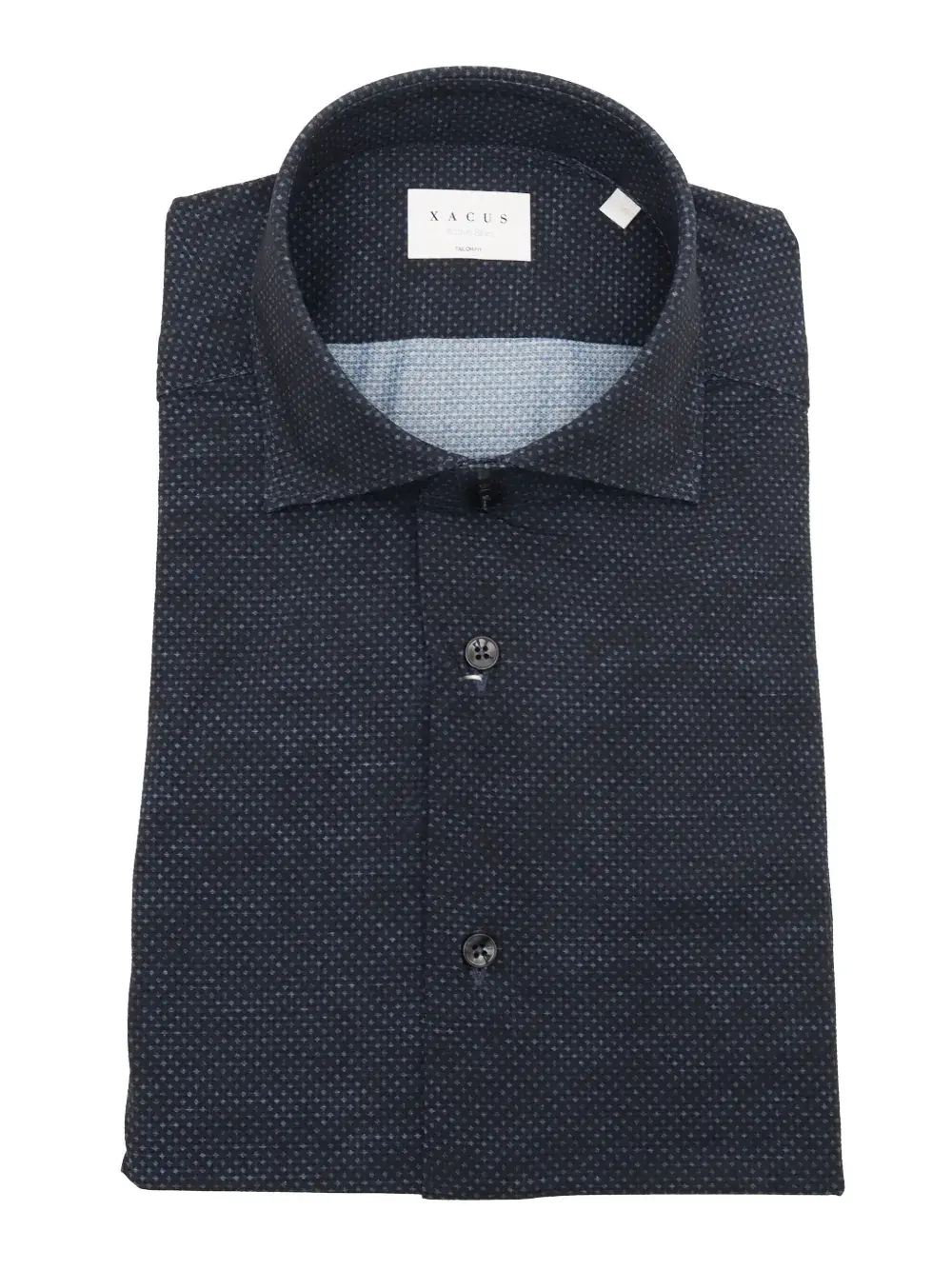 темно-синий с узором, застежка на пуговицы спереди, длинные рукава, манжеты на пуговицах, классический воротник