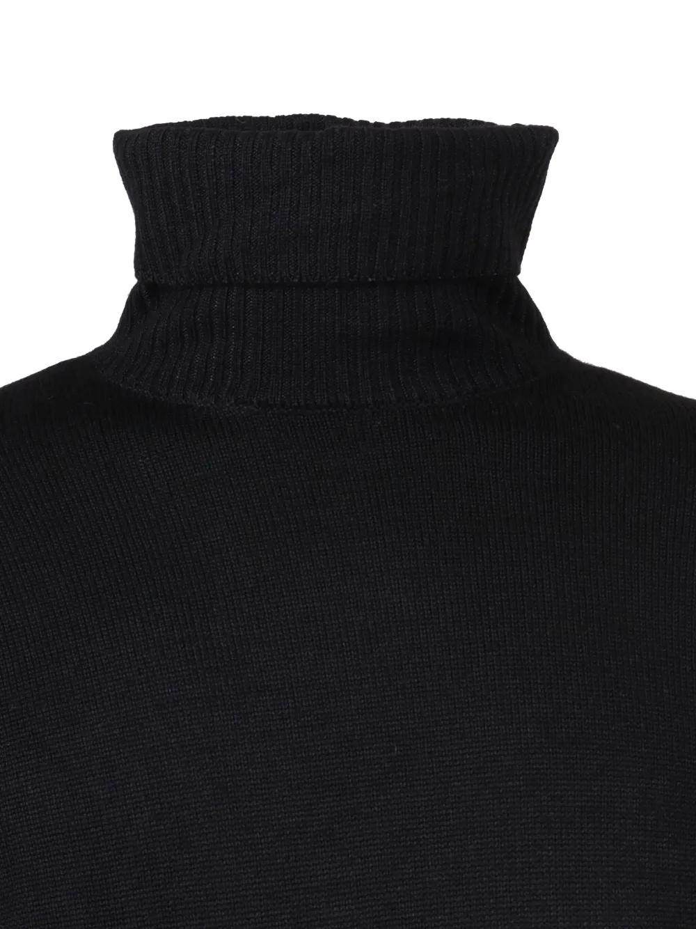 черная водолазка с длинными рукавами, мелкой вязкой, рубчатой отделкой и прямым подолом