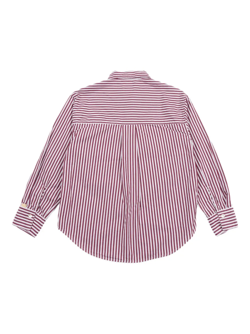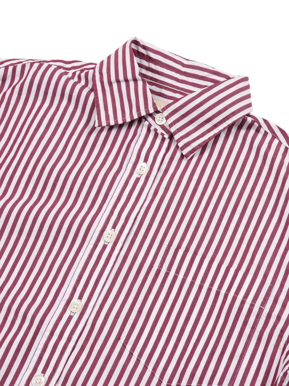 красно-белый полосатый узор, нагрудный карман, застежка на пуговицы, длинные рукава, манжеты на пуговицах