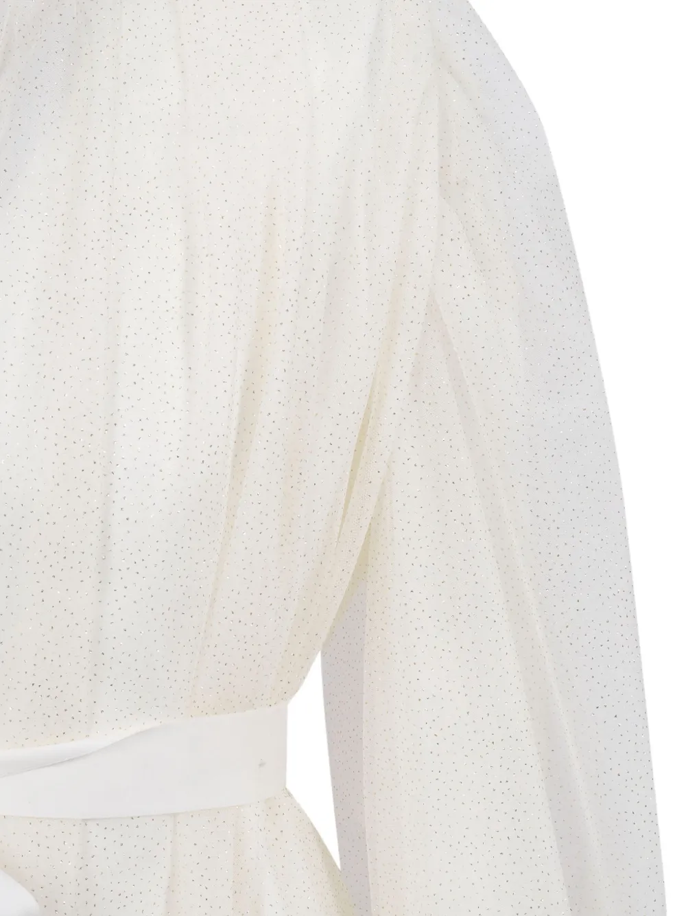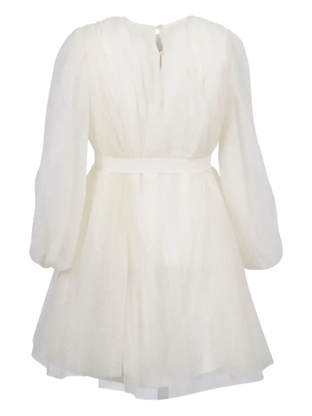 белый тюлевый верх, длинные рукава, бант, круглый вырез