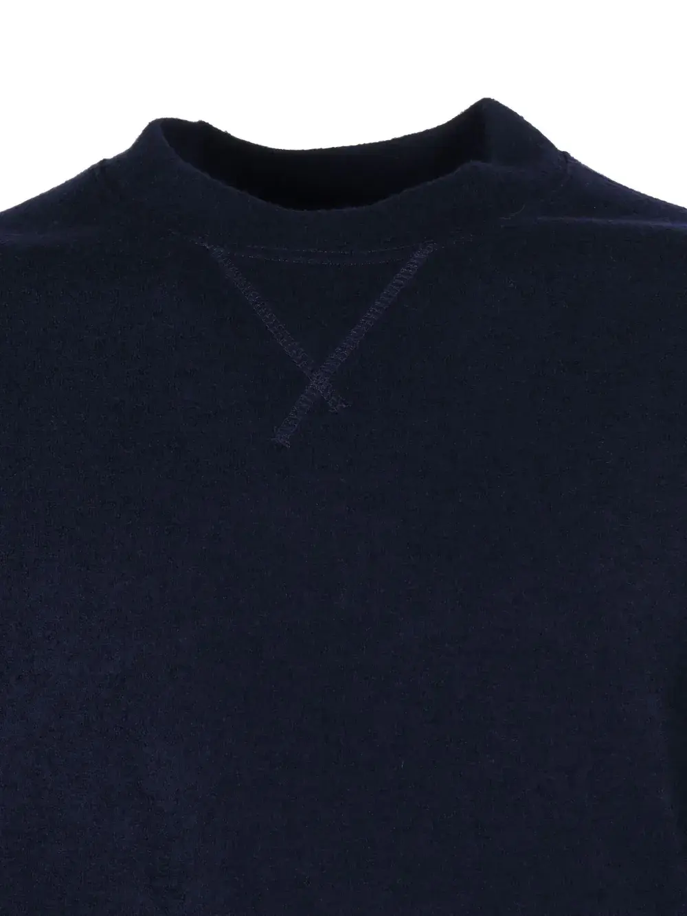 темно-синий шерстяной джемпер с круглым вырезом, длинными рукавами, ребристым подолом и манжетами