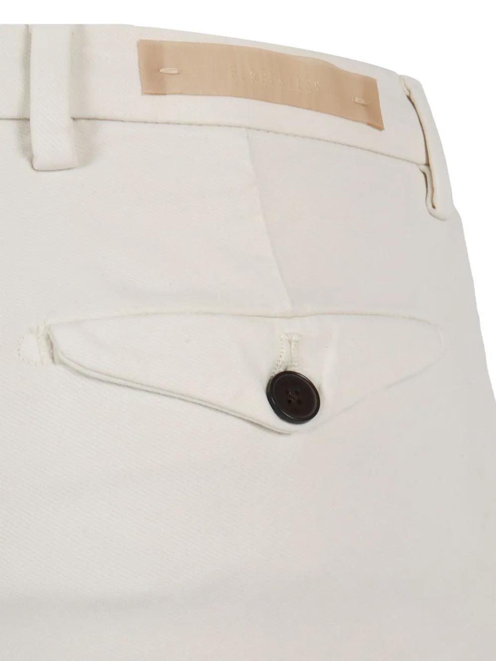застёгивающиеся на пуговицы задние карманы, шлевки для ремня, цвет – молочный
