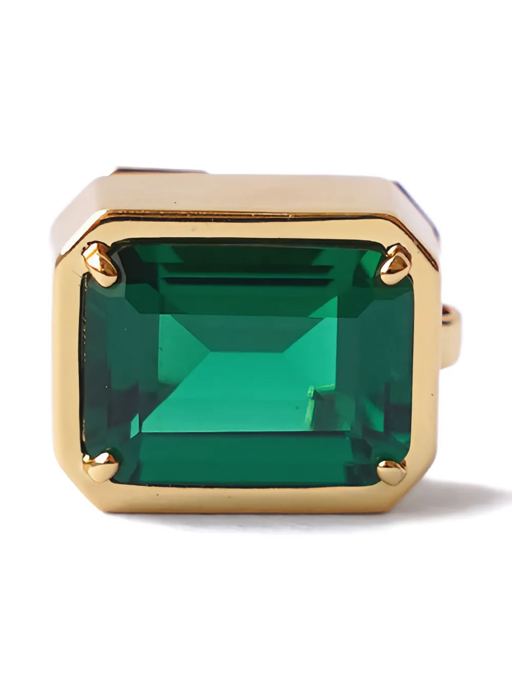 золотистый оттенок позолоченная переработанная латунь цирконий огранки "изумруд" прямоугольная оправа застёжка-защёлка полированная отделка Повседневное использование и внешние факторы могут снижать блеск драгоценных камней и золотых поверхностей.