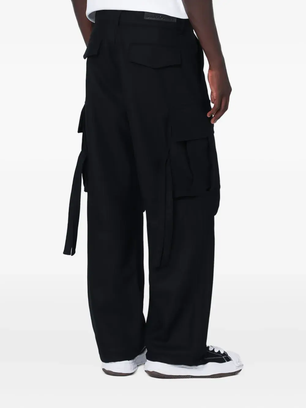 чёрные карманы карго, шлёвки для ремня, нашивка с логотипом