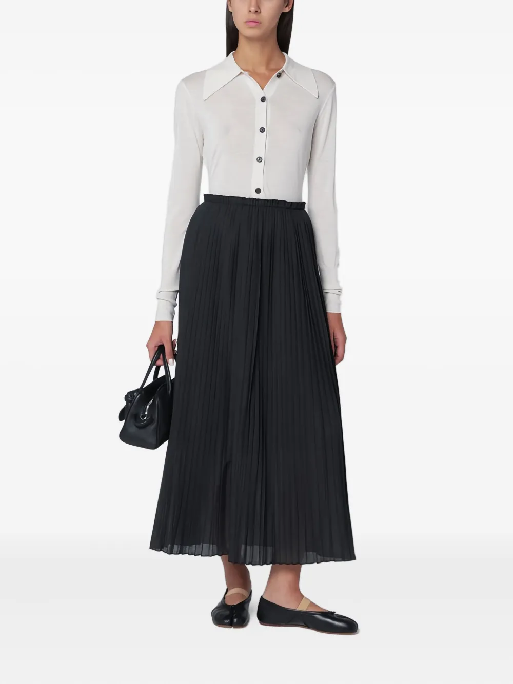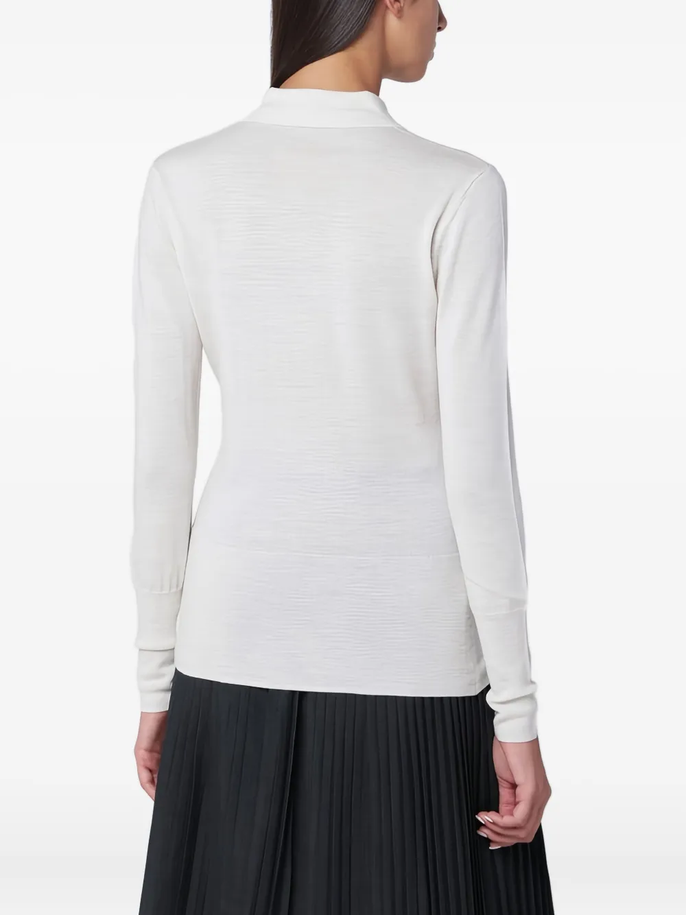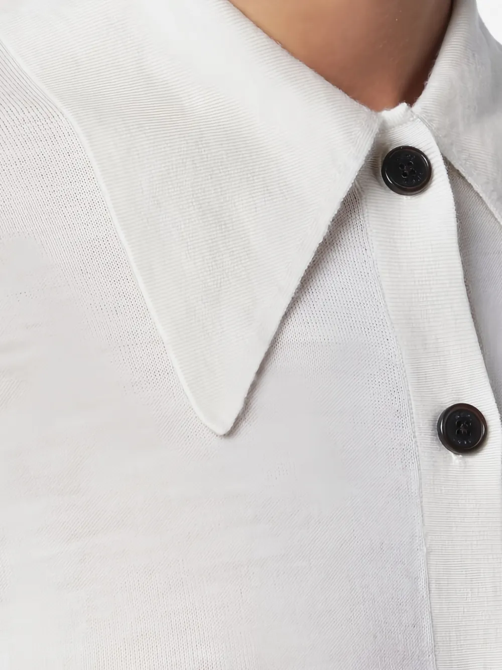 каменно-белый, застежка на пуговицы, длинные рукава, заостренный воротник