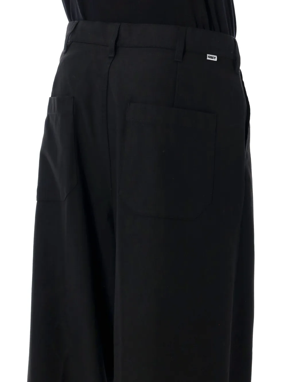 черные, застежка на пуговицы, шлевки для ремня, задний накладной карман, спереди складки, нашивка с логотипом