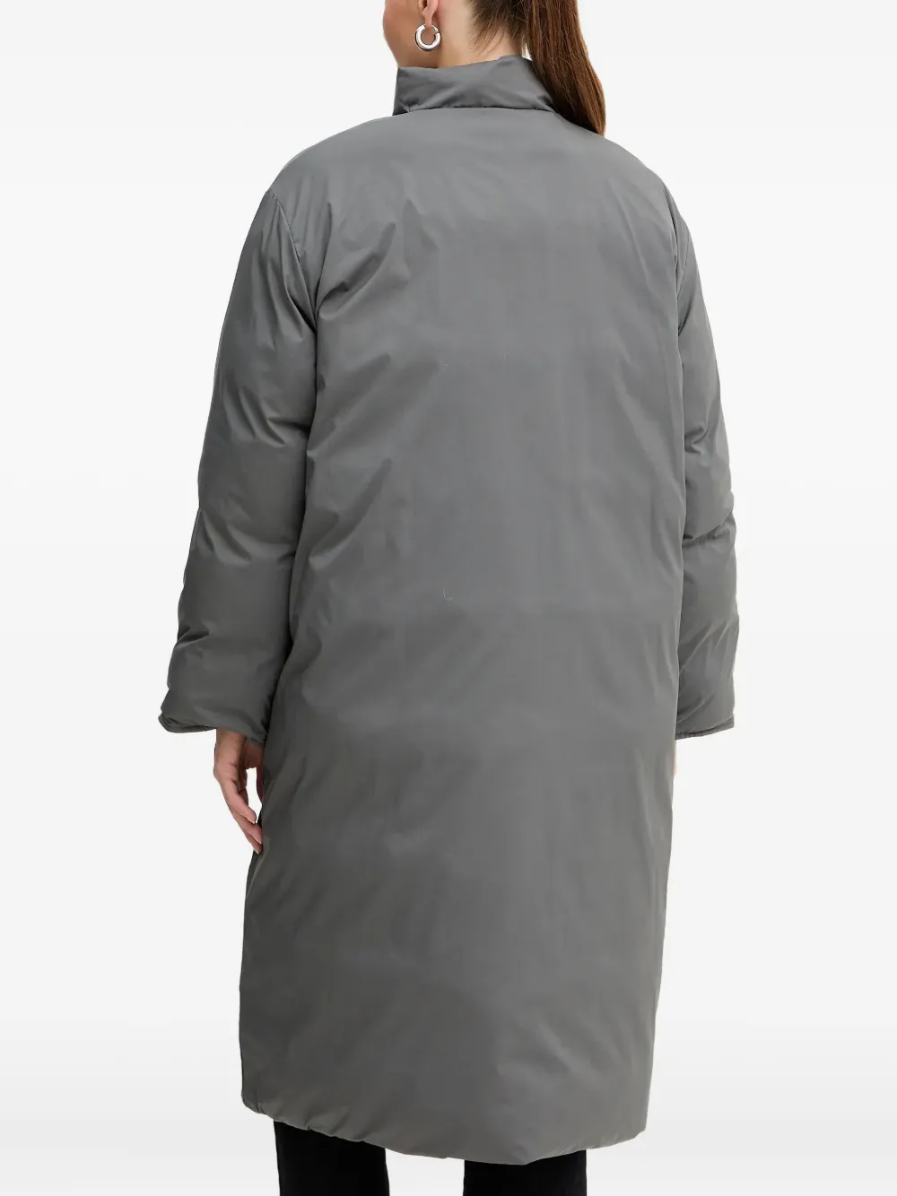 серый стеганый дизайн, застежка на пуговицах, высокий ворот, длинные рукава, двусторонняя модель