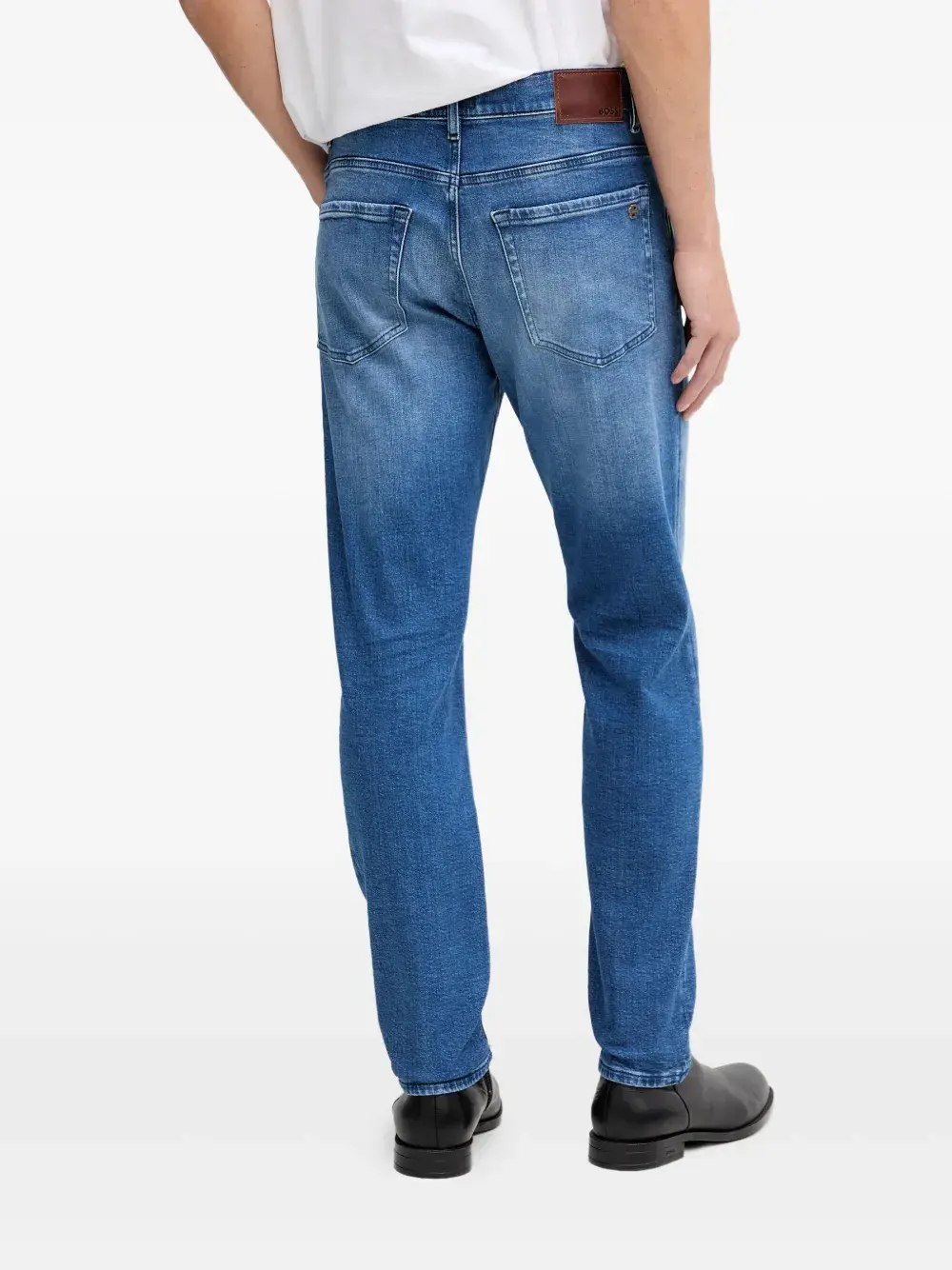 синие шлевки для ремня, пять карманов, нашивка с логотипом, тональная строчка