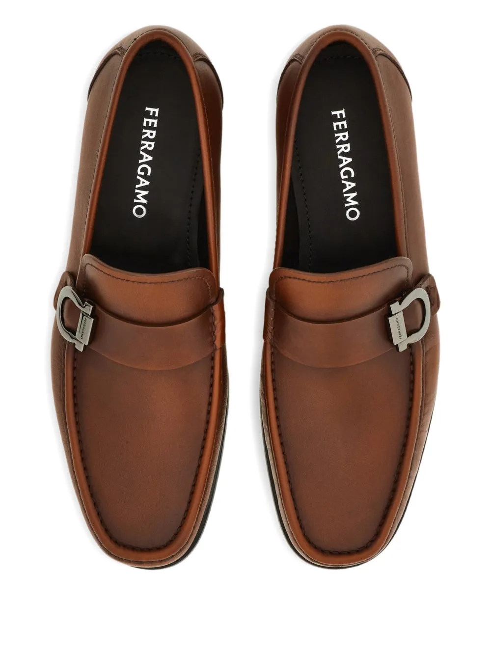 коричневая верхняя часть из телячьей кожи, квадратный носок, акцент в виде пряжки Gancini, отделка в стиле седельной ленты, простроченная кокетка