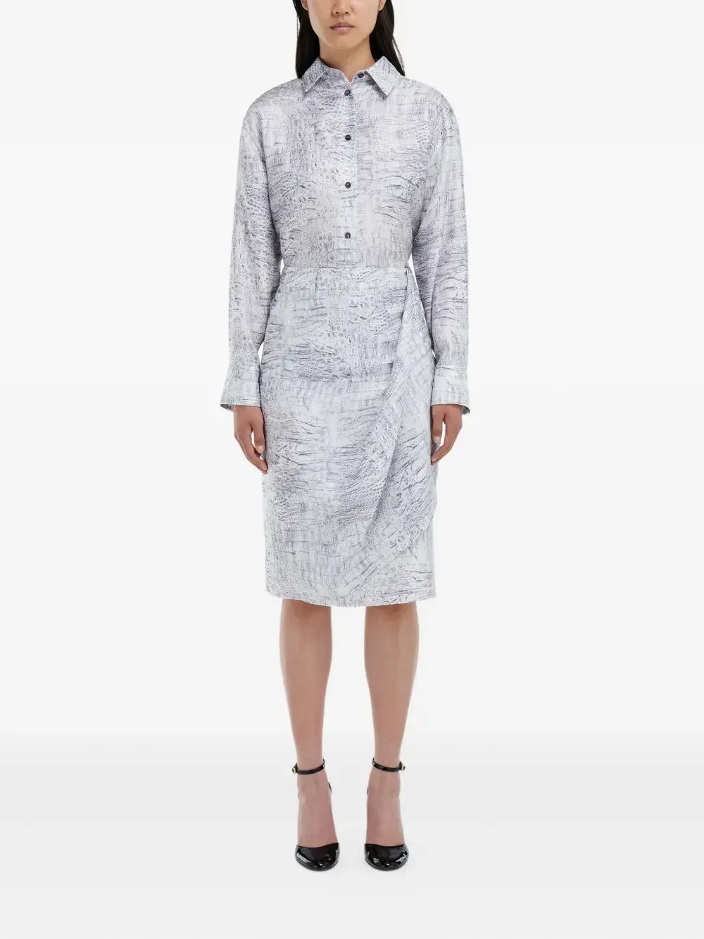 графитовый и маскарпоне, шелковый креп-жоржет, застёжка на пуговицы, длинные рукава, нагрудный карман