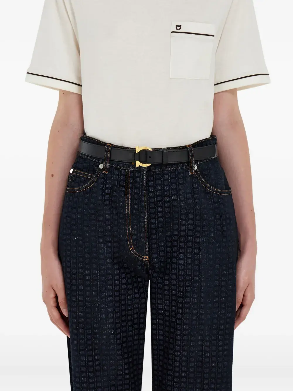 черная телячья кожа, фурнитура под золото, деталь Gancini, простроченный ремешок