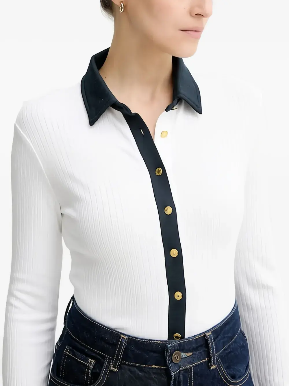 белый в рубчик, вязаный, застёжка на пуговицы, классический воротник, длинные рукава
