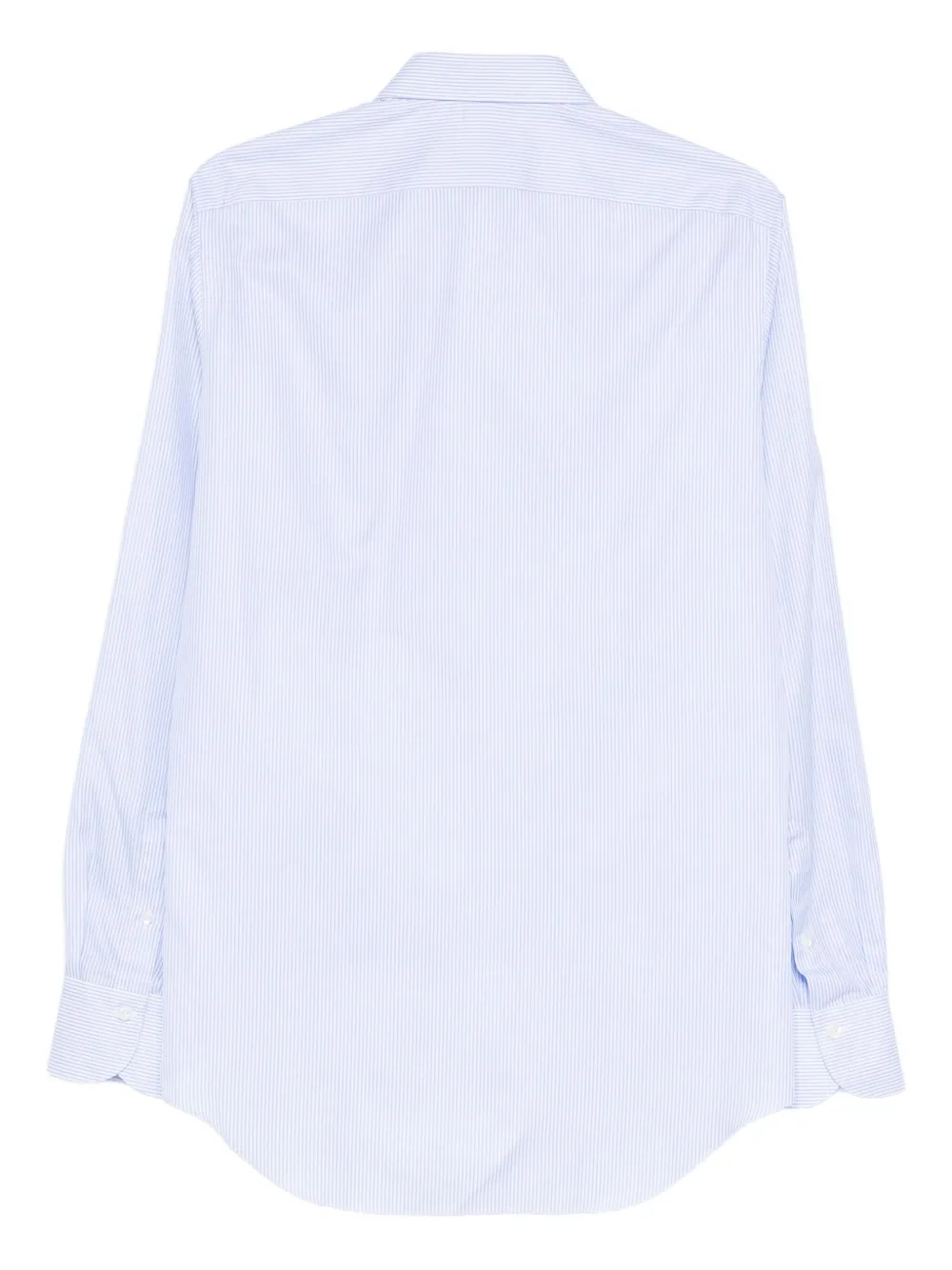 светло-голубая рубашка в полоску с застежкой на пуговицы, длинными рукавами и манжетами на пуговицах