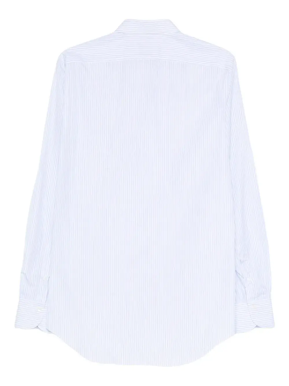 светло-голубая рубашка в полоску, застёжка на пуговицы, длинные рукава, манжеты на пуговицах, заострённый воротник