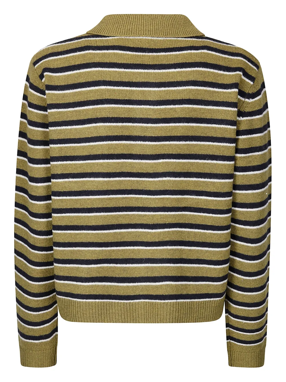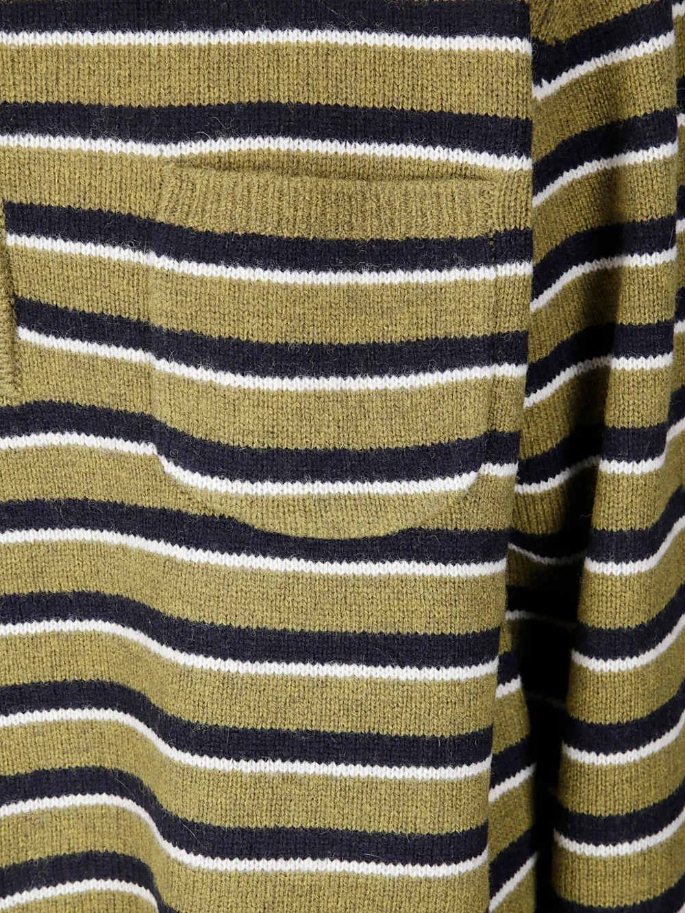 ивово-зеленая полосатая рубашка-поло с нагрудным карманом, застежкой на пуговицы и длинными рукавами