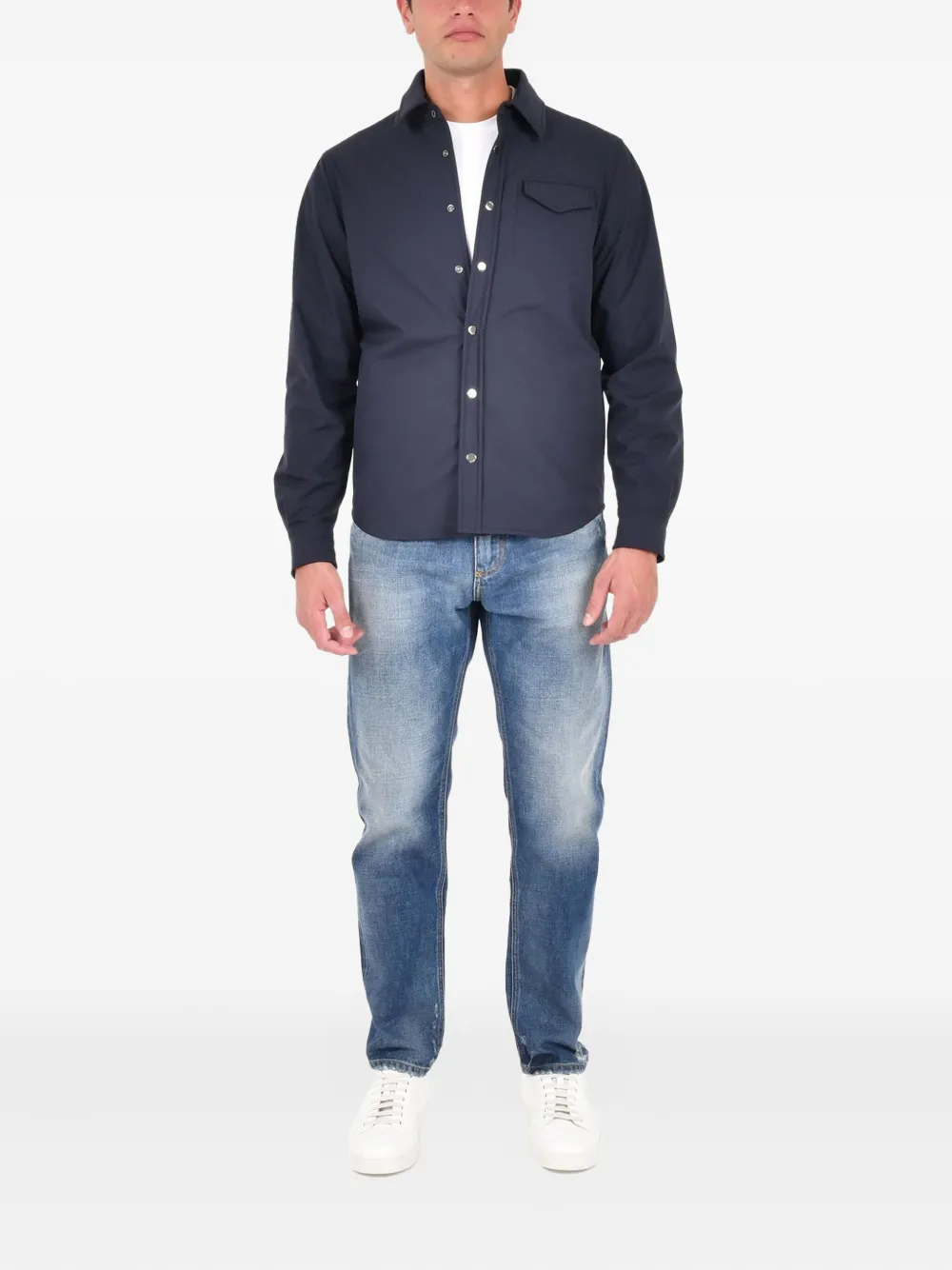 темно-синяя рубашка на пуговицах с нагрудным карманом и длинными рукавами