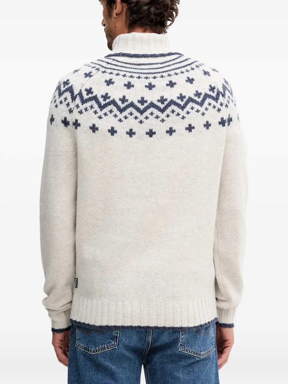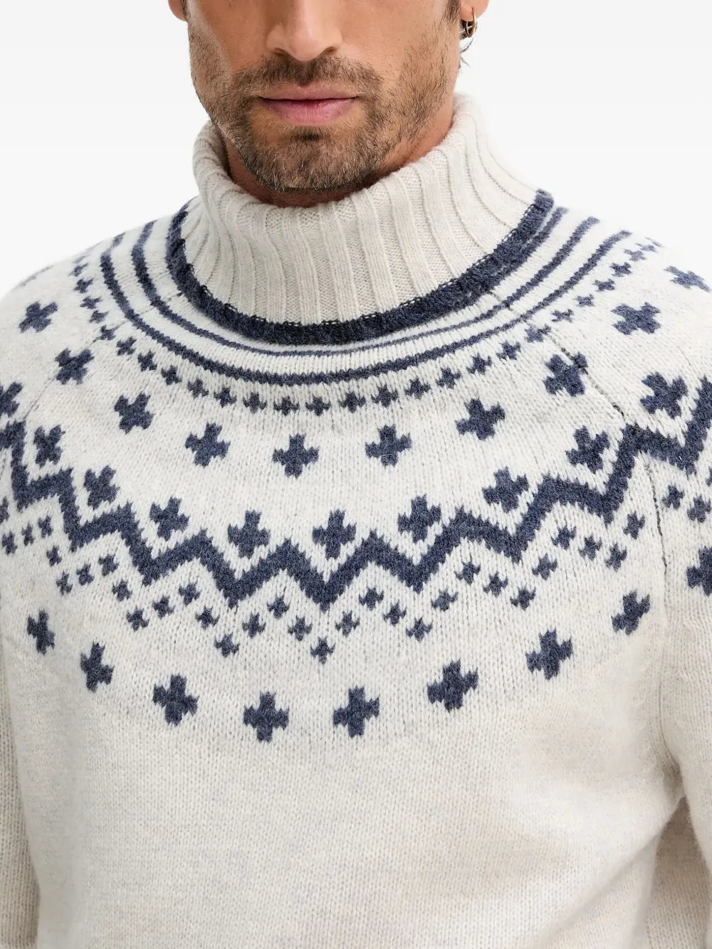 белая водолазка с узором, длинные рукава, манжеты и низ в рубчик