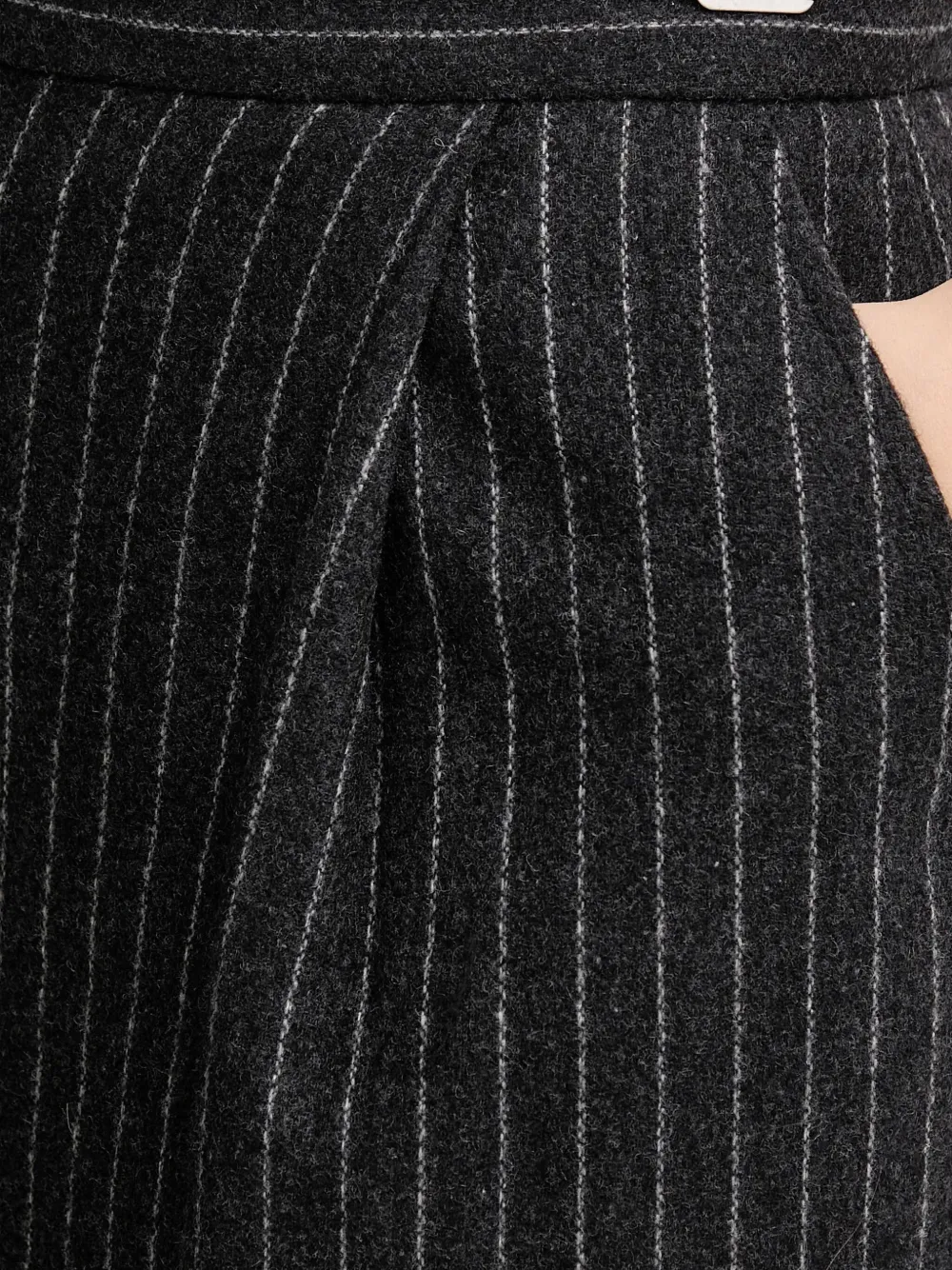 серый цвет с узором в виде тонких полосок, металлическая табличка-логотип, боковые карманы, задние карманы, шлевки для ремня