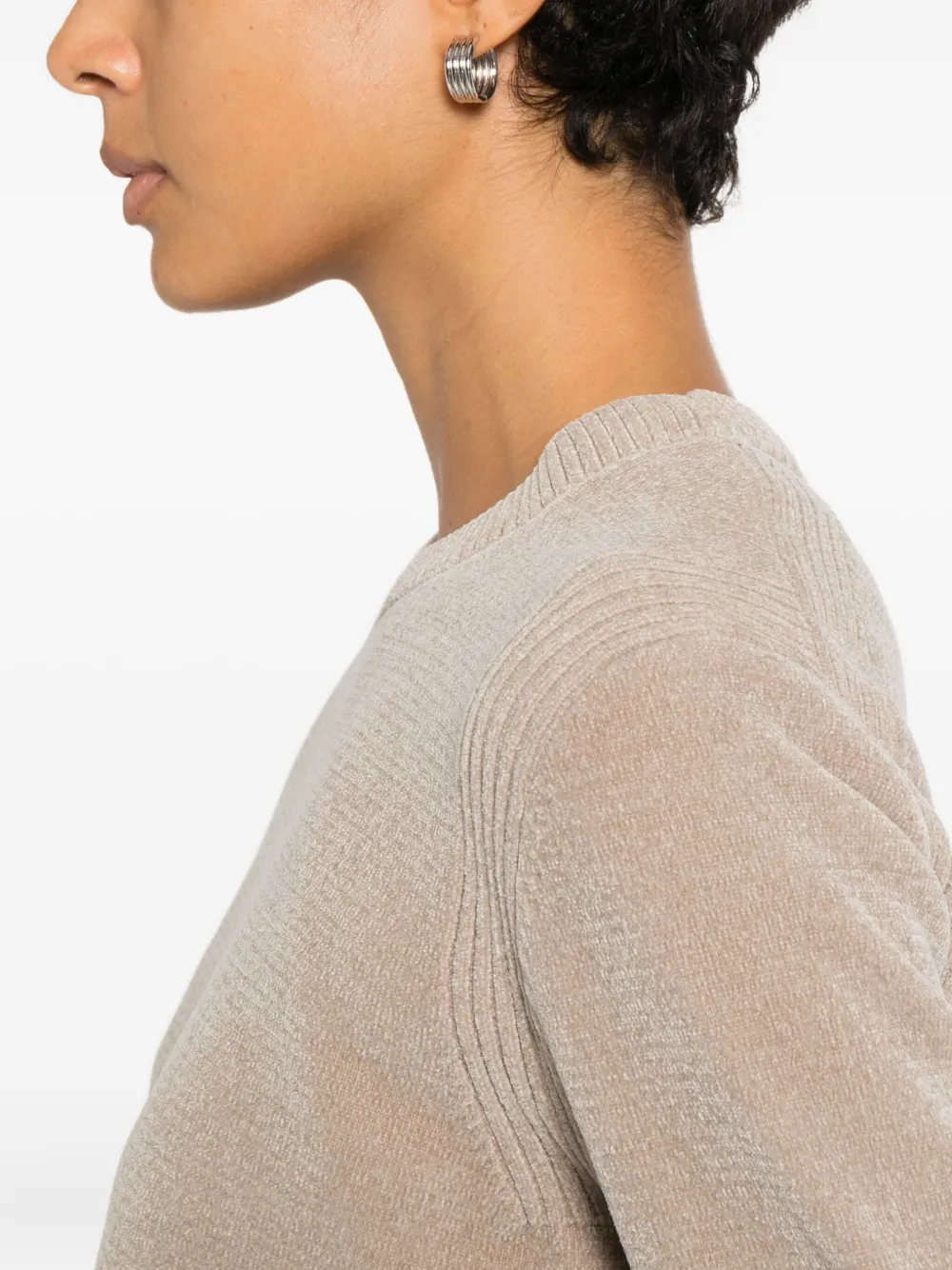 кремовый цвет, круглый вырез, длинные рукава, рубчатый низ, рубчатые манжеты, рубчатые вставки