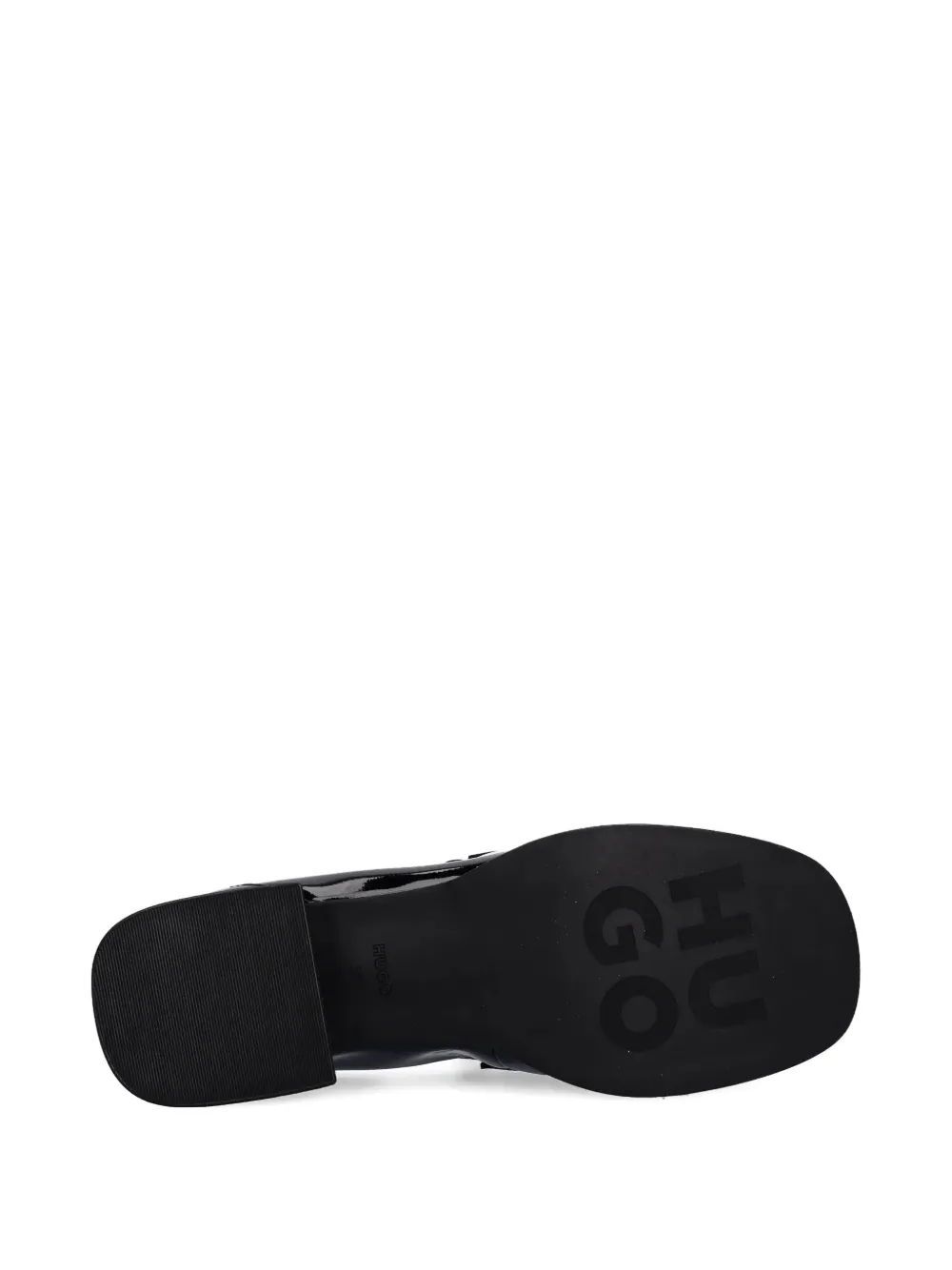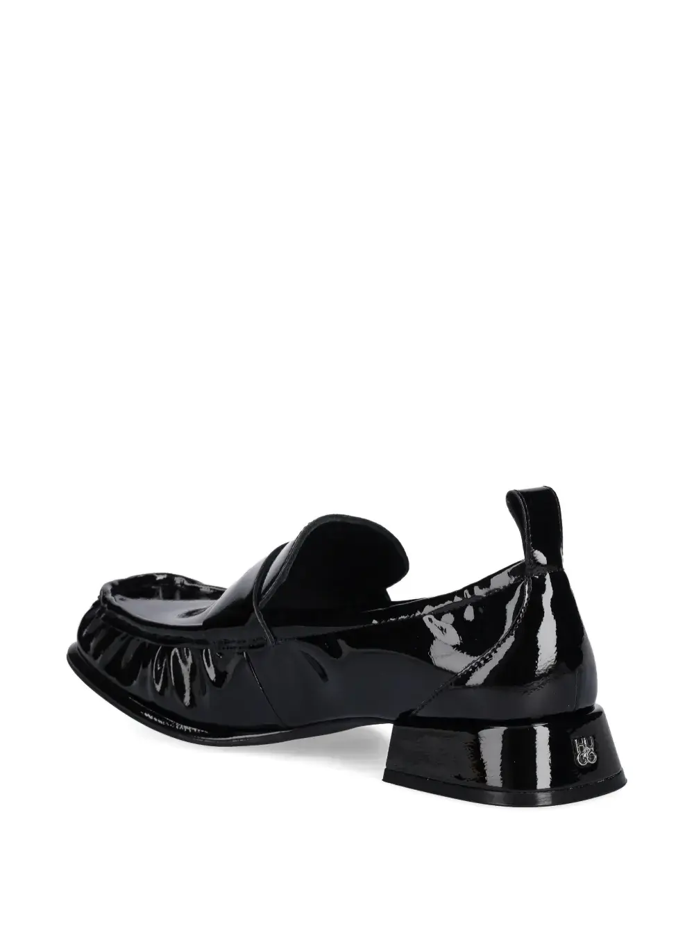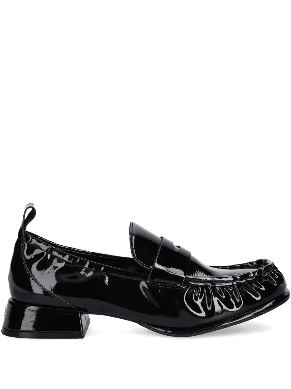 черные туфли-лодочки с оборками, блок-каблуком и петелькой на пятке