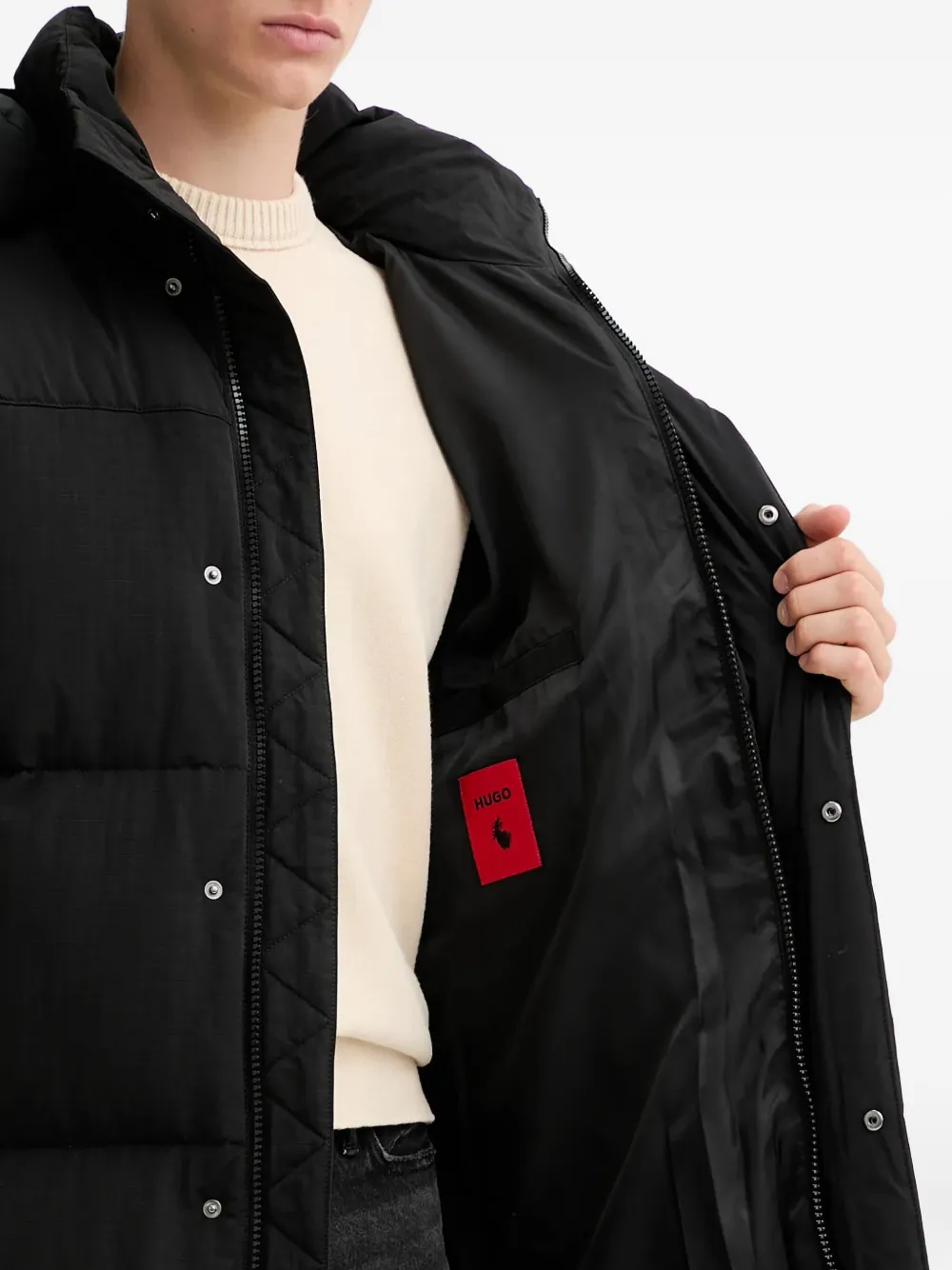 черный стеганый дизайн, капюшон, застежка-молния, застежка на кнопки, боковые прорезные карманы