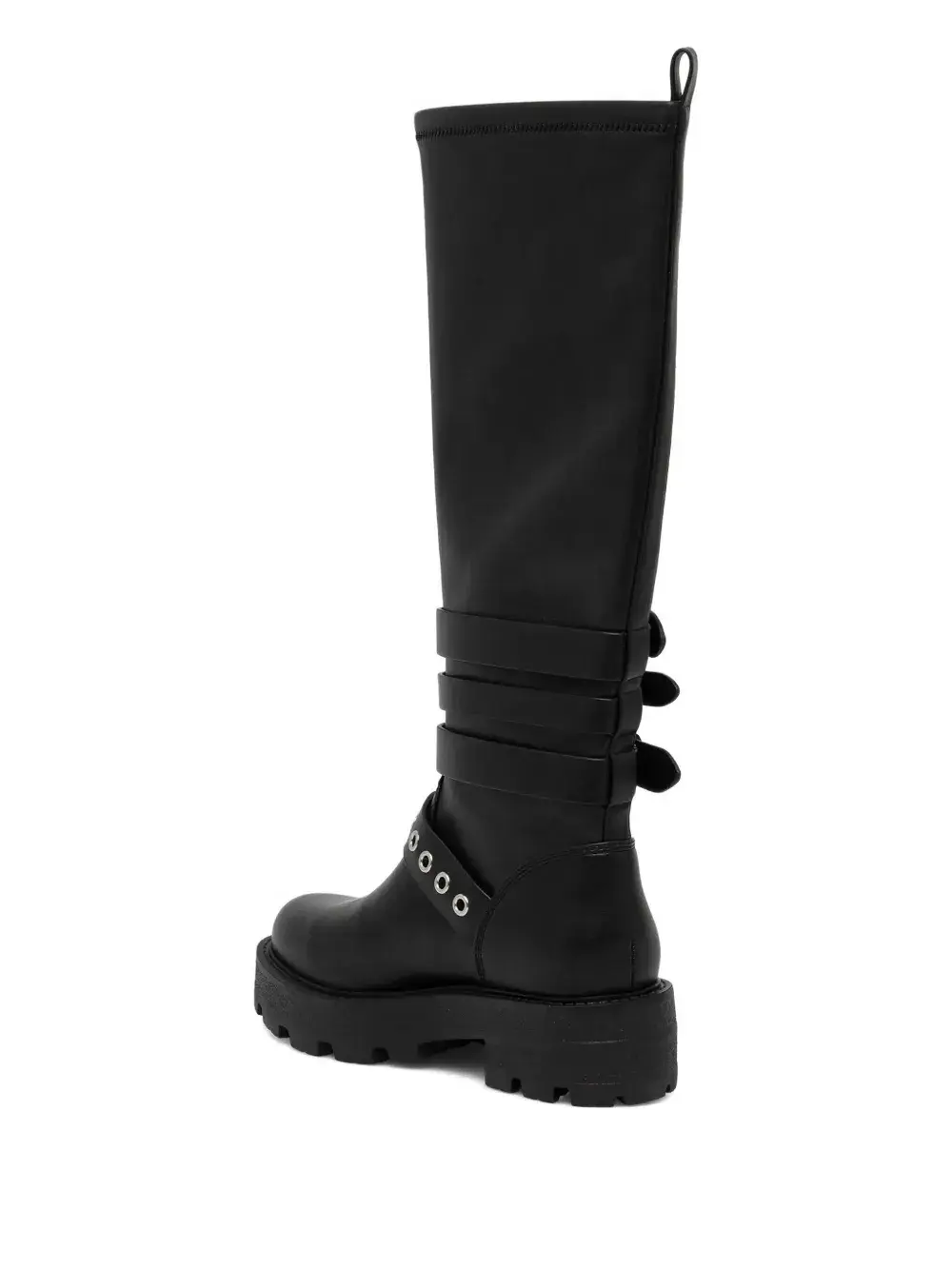 черные ремешки с пряжкой, отверстия, застежка-молния, массивная подошва