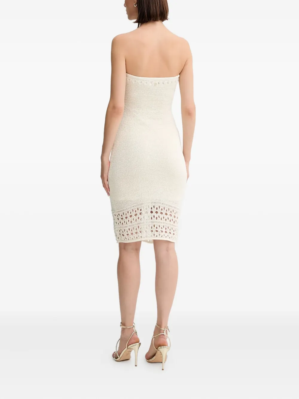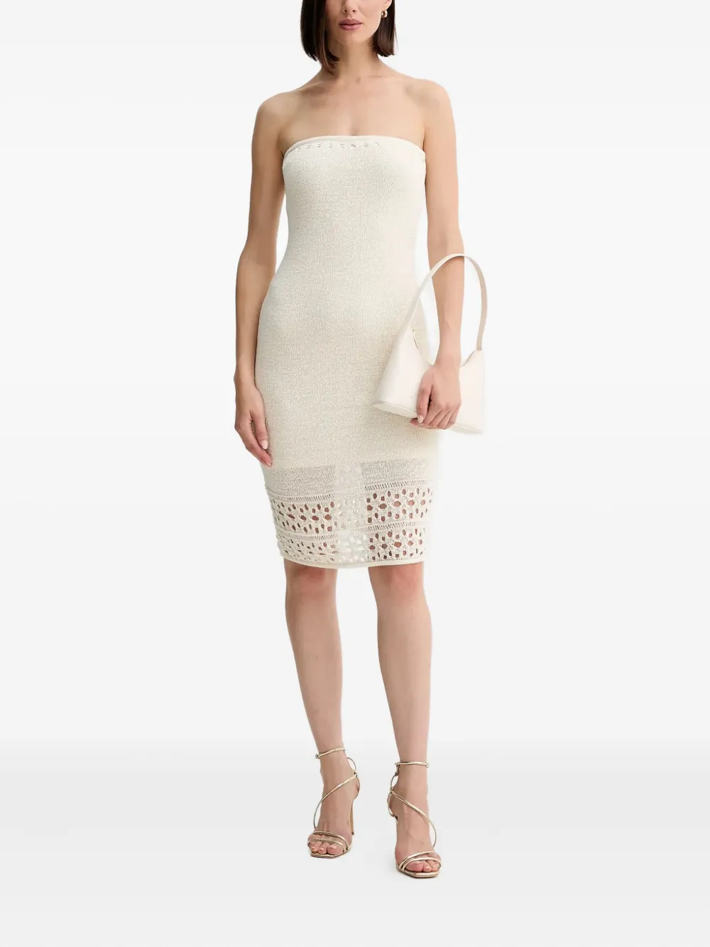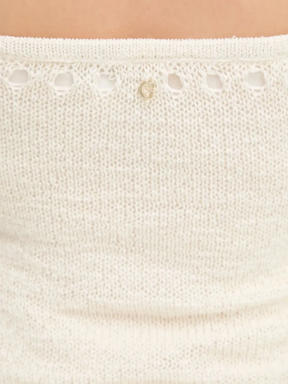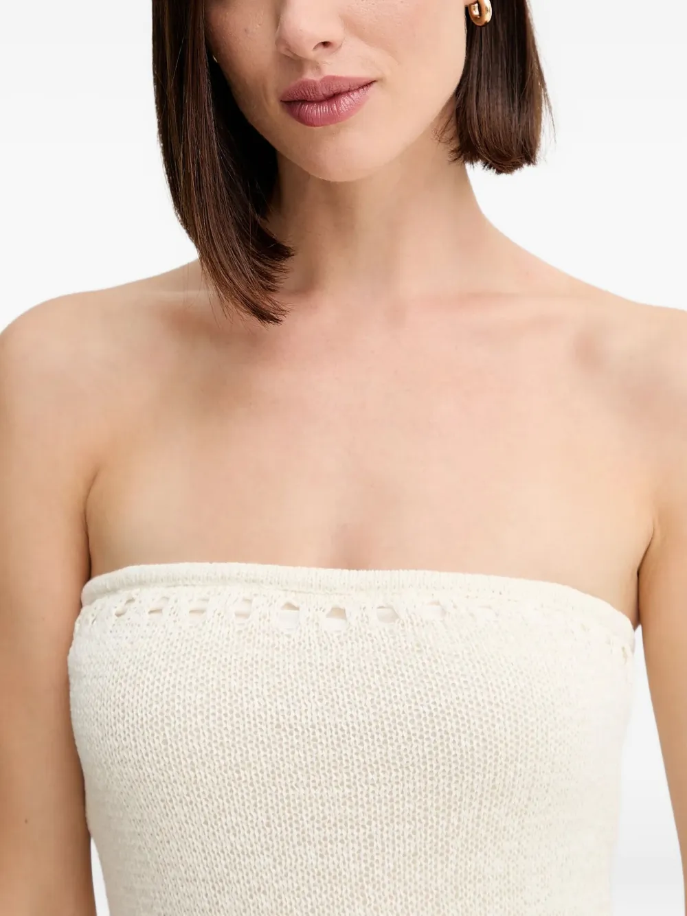 сливочно-белое мини-платье без бретелек с вязаной отделкой и логотипом