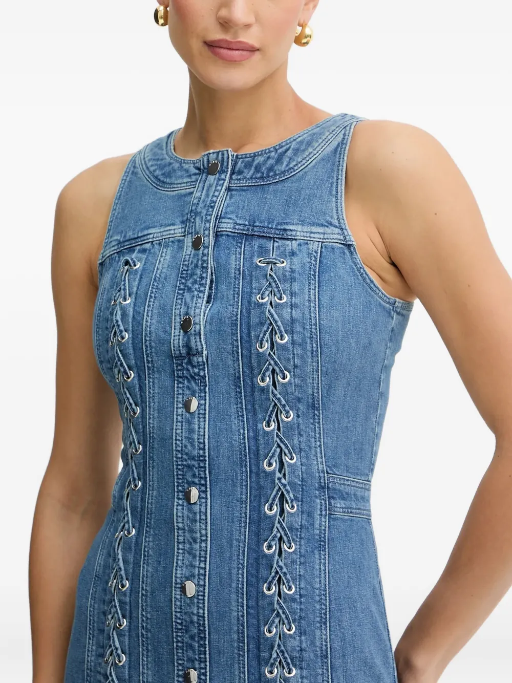 Платье мини на пуговицах со шнуровкой Guess Usa, синий