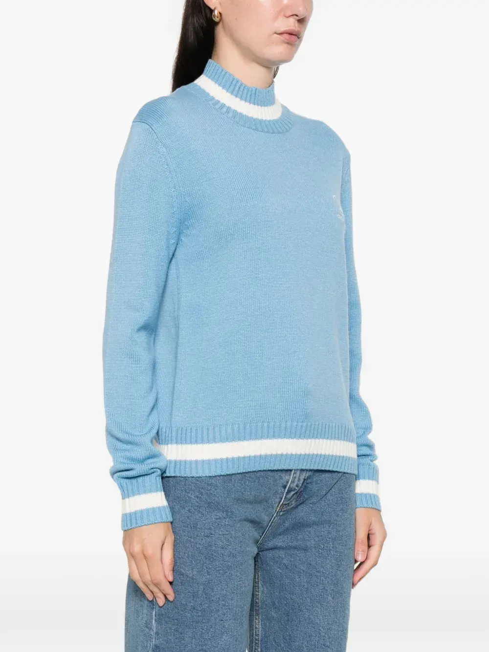светло-голубой трикотажный свитер с круглым вырезом и рубчатой вязкой