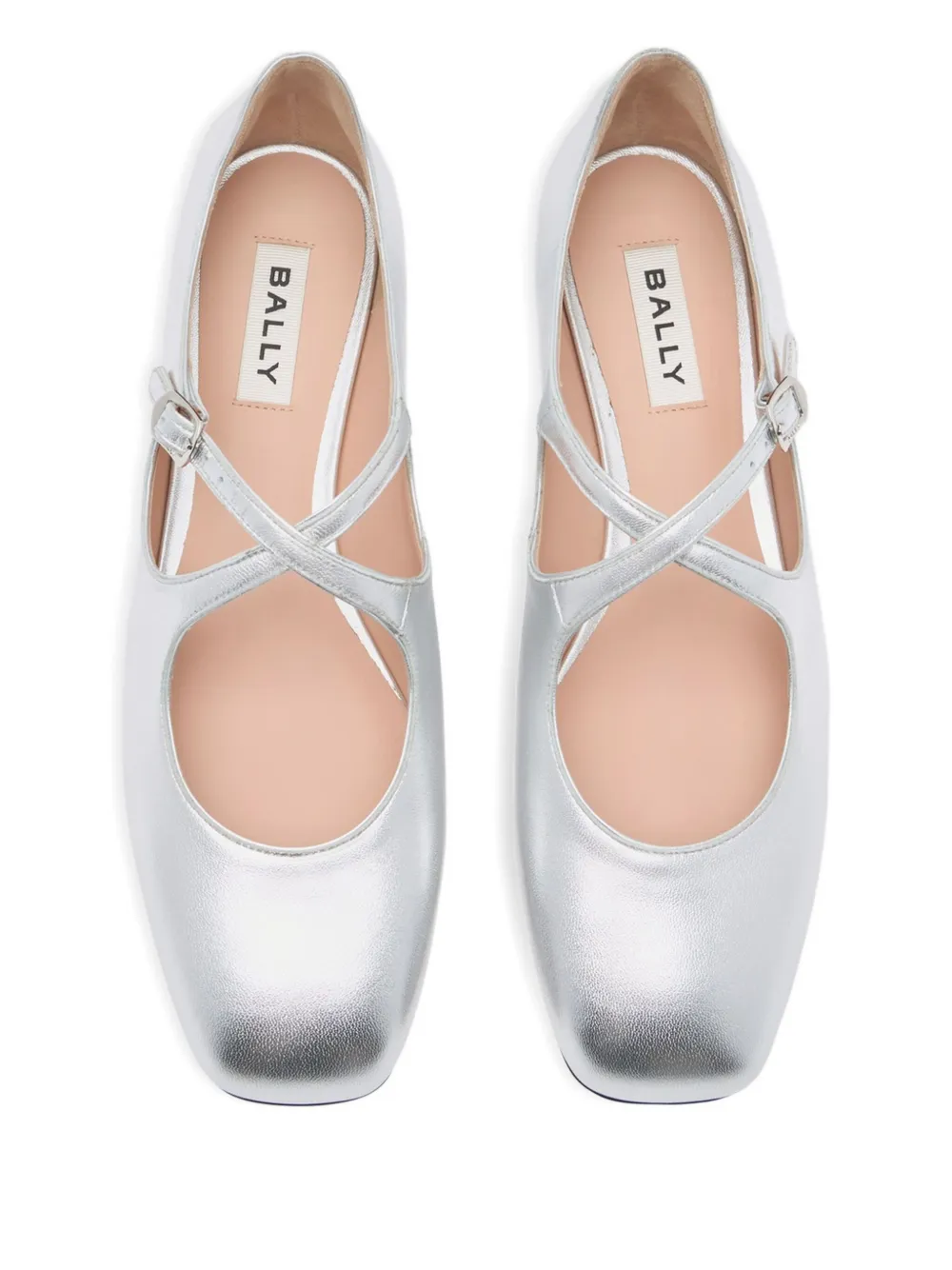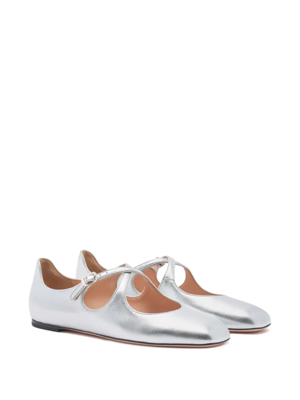 застежка-серебристая пряжка, круглый носок, плоская подошва