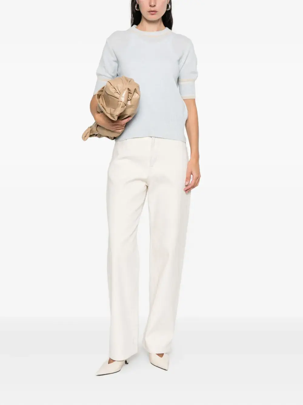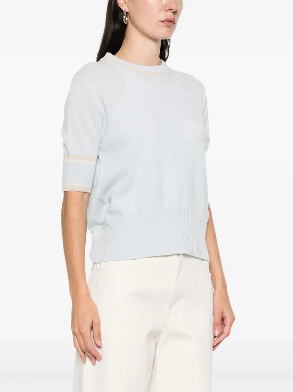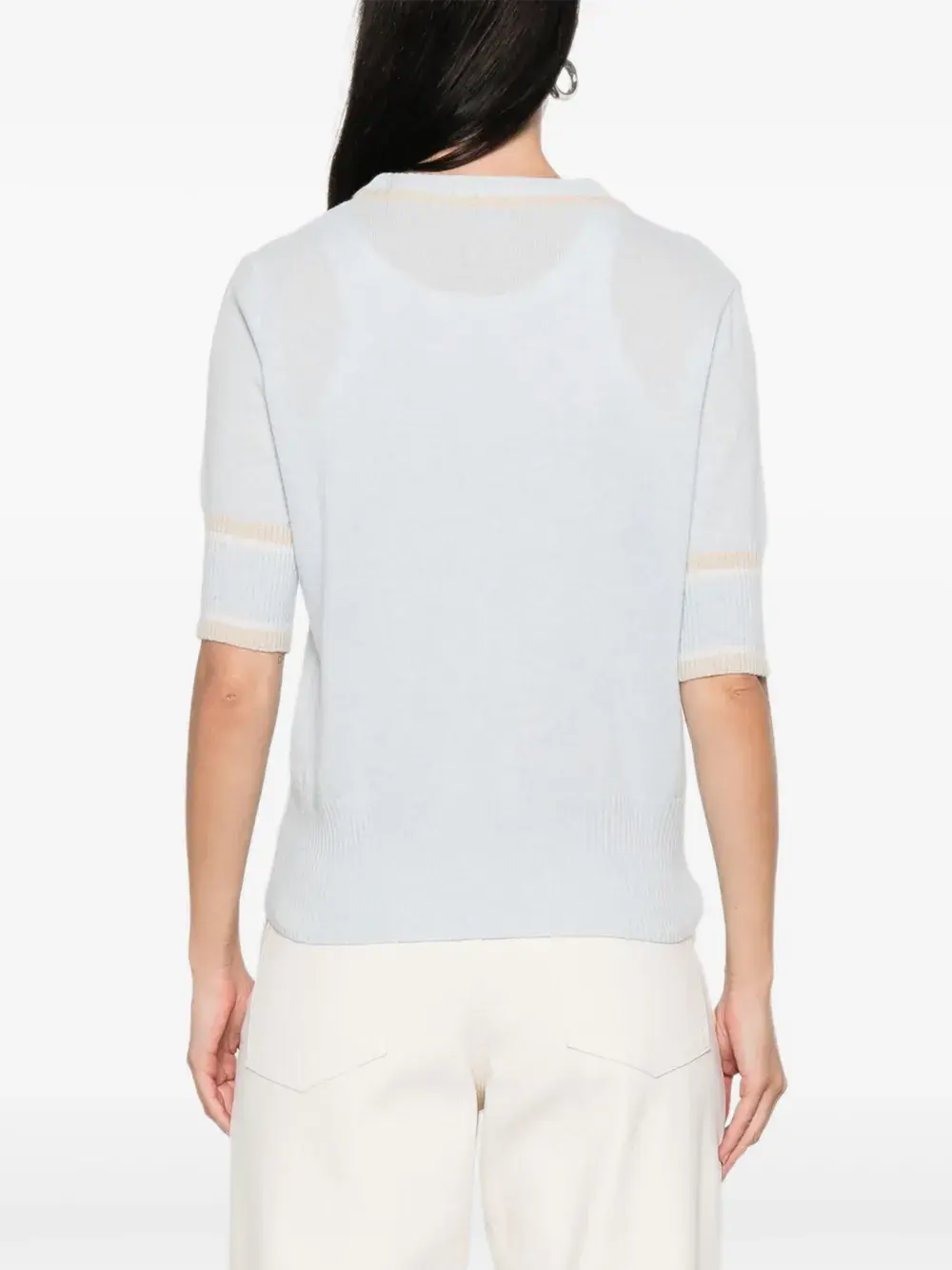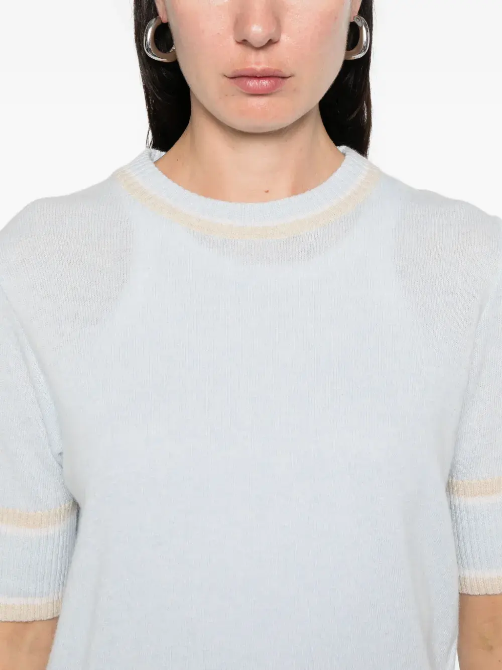 светло-голубой круглый вырез короткие рукава отделка на воротове отделка на манжетах трикотаж в рубчик