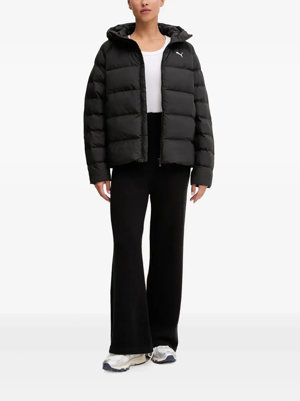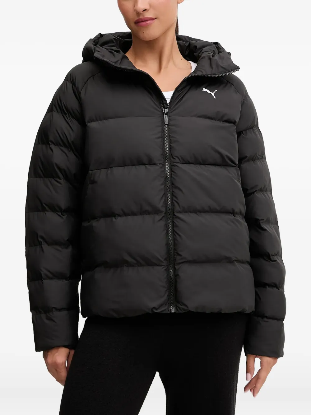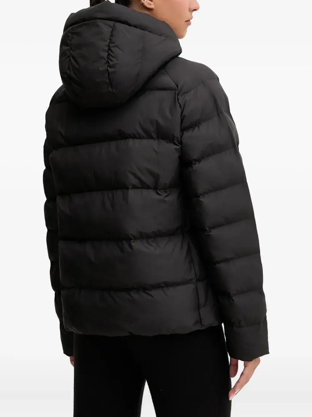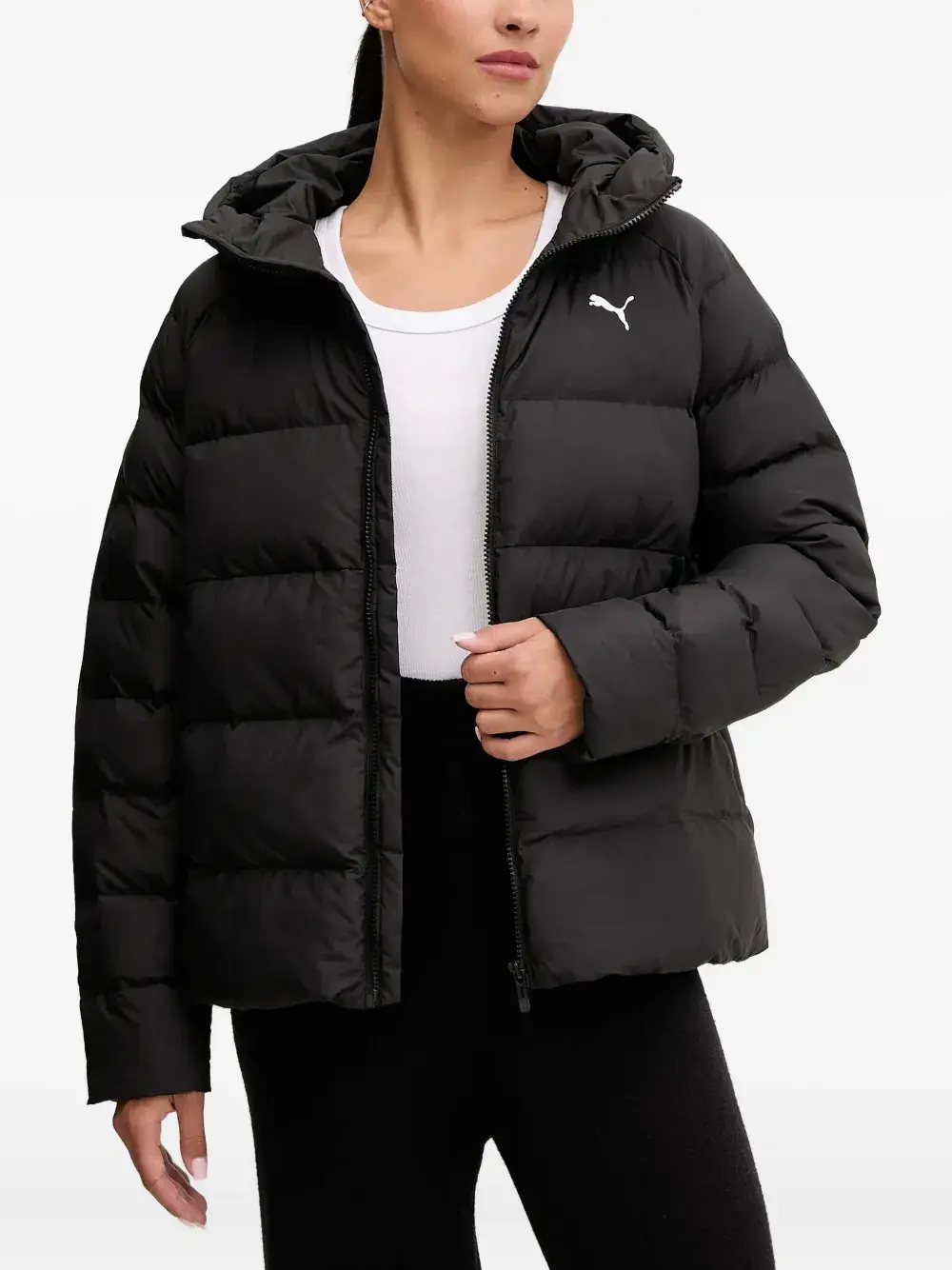 черная толстовка с логотипом, застежкой-молнией, капюшоном, горизонтальной стёжкой и длинными рукавами